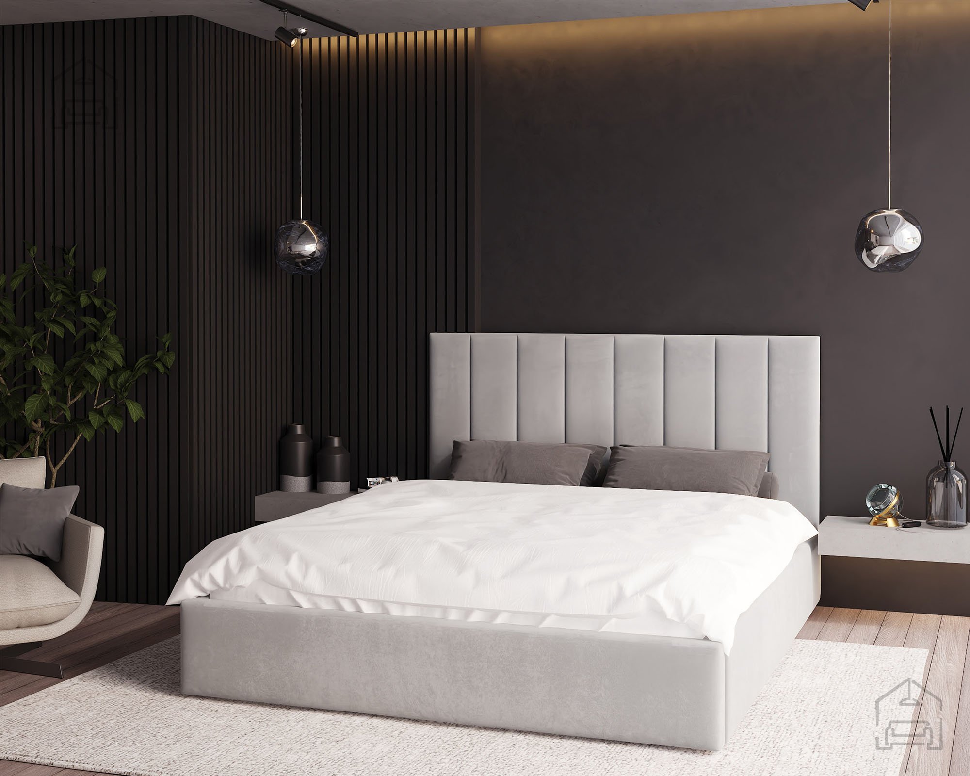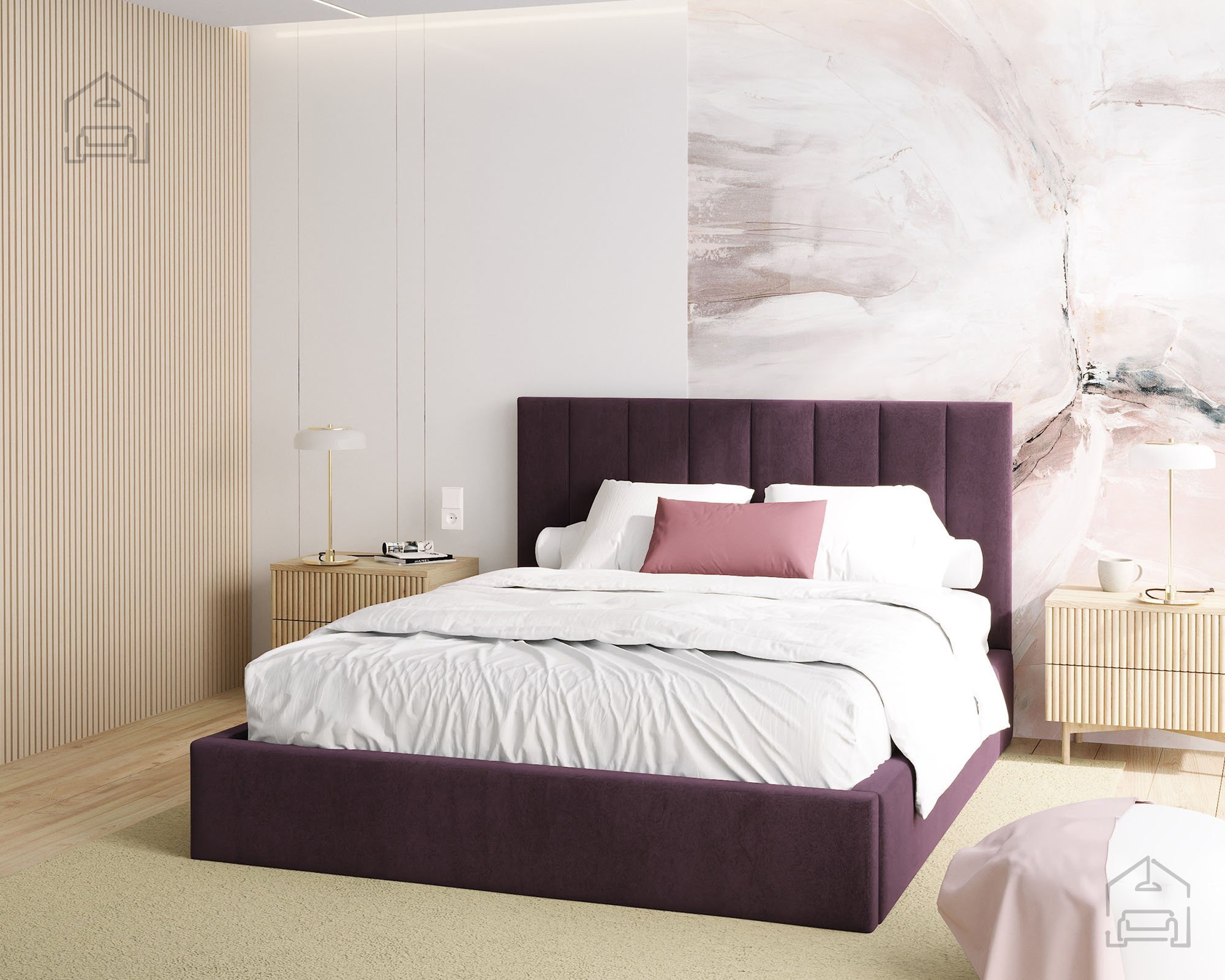 Der gepolsterte Bettrahmen sorgt nicht nur für mehr Komfort beim Sitzen am Rand, sondern verleiht dem Raum auch eine weiche, elegante Note. Die Konstruktion umfasst ein Lattenrost, das für gute Belüftung der Matratze sorgt und so deren Lebensdauer verlängert. Verwendet werden hochwertige Materialien wie T-25-Schaumstoff, Holz und Spanplatte, die Stabilität und Bequemlichkeit in idealem Verhältnis bieten – wichtig für einen erholsamen Schlaf.
