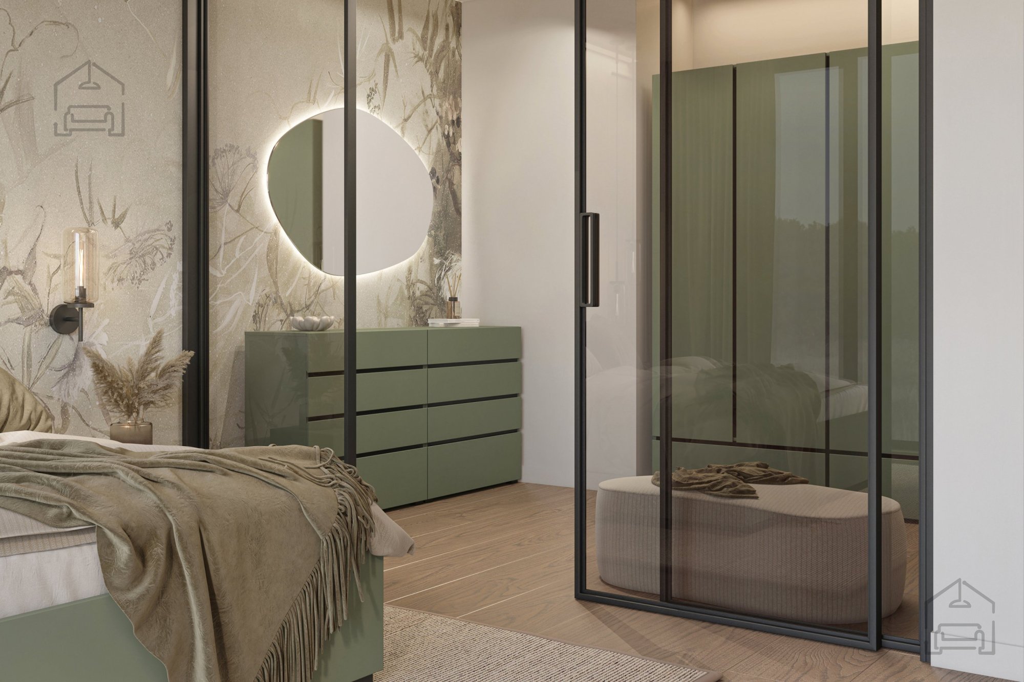 Elegante Kombination aus Grün und Schwarz: Kommode Cross S – Helvetia meble.