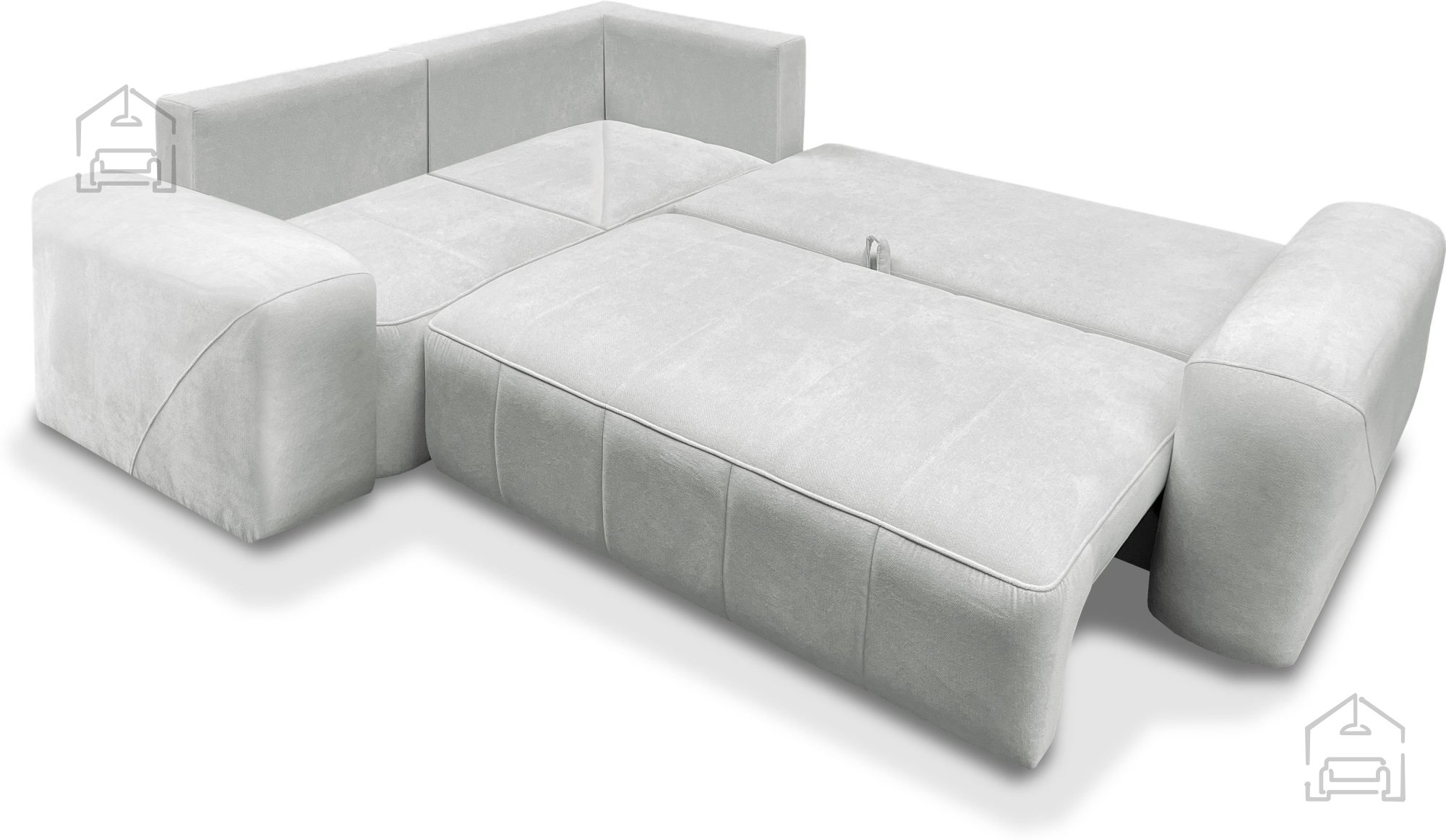 Das Modell Novelo II ist mit einem zuverlässigen Euro-Mechanismus ausgestattet, der ein einfaches und schnelles Ausziehen zum Bett ermöglicht. Im ausgeklappten Zustand entsteht eine bequeme Liegefläche von 205x125 cm – ideal für zwei Personen. Zusätzlich verfügt die Garnitur über einen Bettkasten, in dem Decken, Kissen oder Bettwäsche Platz finden – eine praktische Lösung für mehr Ordnung im Raum. So gewinnen Sie zusätzlichen Stauraum, ohne auf ein ansprechendes Design verzichten zu müssen.