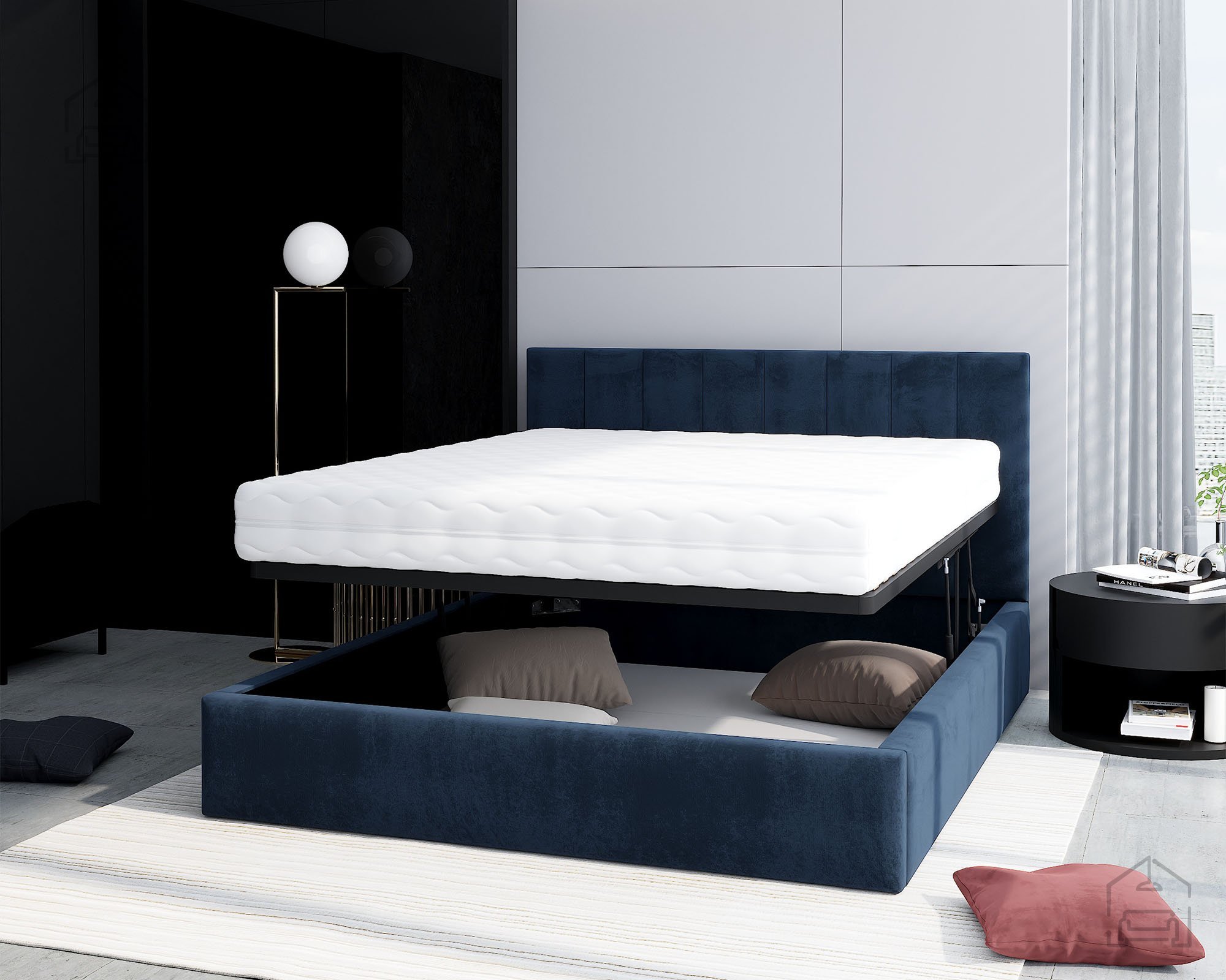 Das Bett mit Hebemechanismus Justin FDM ist eine ausgezeichnete Wahl für alle, die Komfort, Ästhetik und Funktionalität verbinden möchten. Dank des großzügigen Stauraums und des hochwertigen Holzmechanismus erhalten Sie ein praktisches Möbelstück, das nicht nur einen bequemen Schlafplatz bietet, sondern auch eine clevere Lösung zur Aufbewahrung. Durch die gepolsterte Ausführung und die Auswahl an Farben passt es sowohl in moderne als auch klassische Schlafzimmer und überzeugt mit seiner stabilen Bauweise und Alltagstauglichkeit.