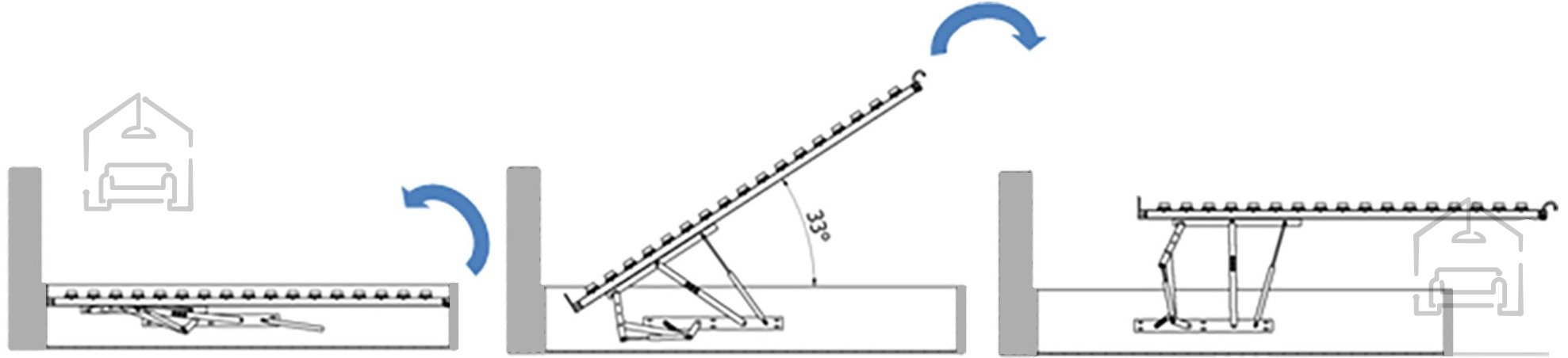Das Bett Justin überzeugt mit einem besonders praktischen Hebesystem. Der Holzmechanismus hebt die Liegefläche parallel zum Bettrahmen an und erleichtert so den Zugang zum Stauraum darunter. Dieser reicht bis zum Boden und bietet ausreichend Platz für Bettwäsche, Decken oder saisonale Kleidung. Da der Boden des Stauraums direkt auf dem Fußboden aufliegt, können dort auch schwerere Gegenstände sicher verstaut werden, ohne dass die Konstruktion belastet wird.