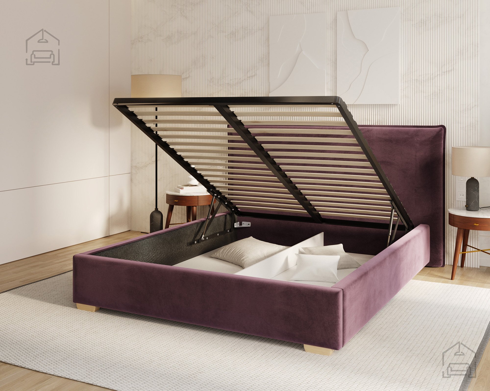 Der Hebemechanismus aus Holz ist robust konstruiert und sorgt für eine zuverlässige, langlebige Funktion. Der stabile Lattenrost stützt die Matratze gleichmäßig ab, was für eine ausgewogene Gewichtsverteilung und ein angenehmes Liegegefühl sorgt. Das Perfetto-Bett ist kein Boxspringmodell, sondern ein klassisches, gepolstertes Bett mit Hebefunktion – ideal, um das Reinigen und Pflegen zu erleichtern.
