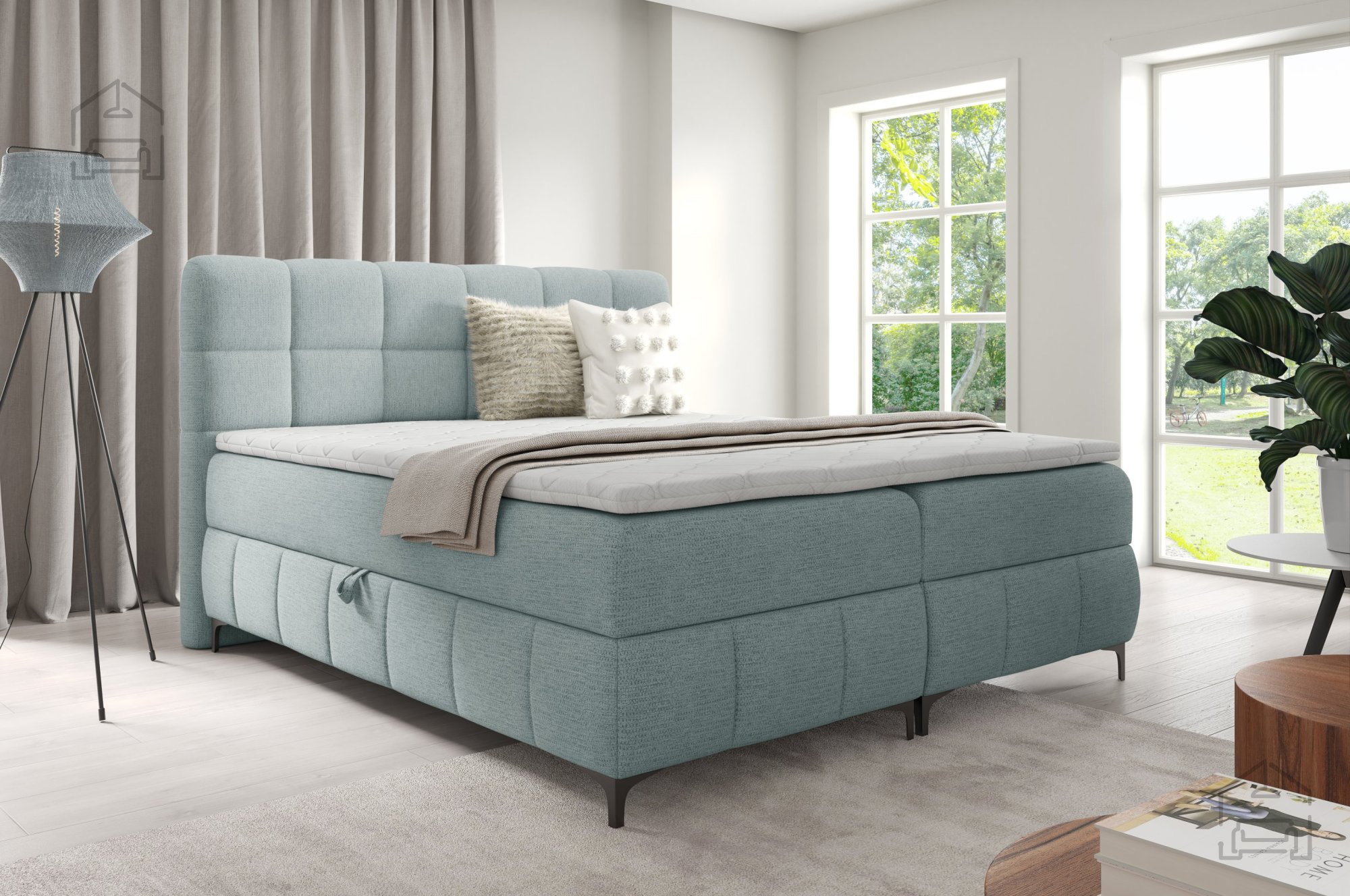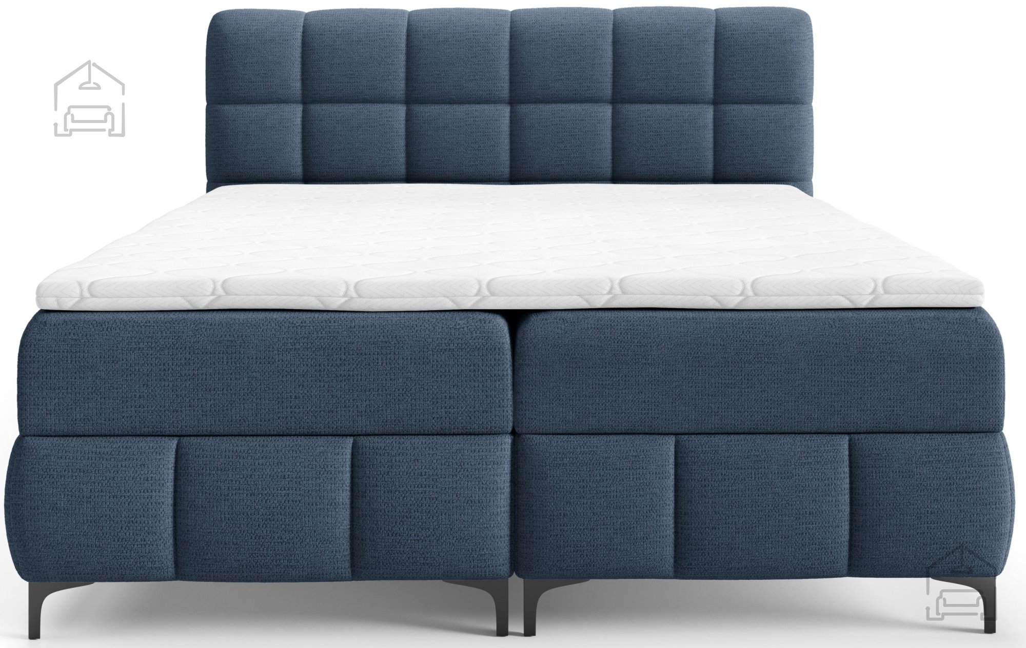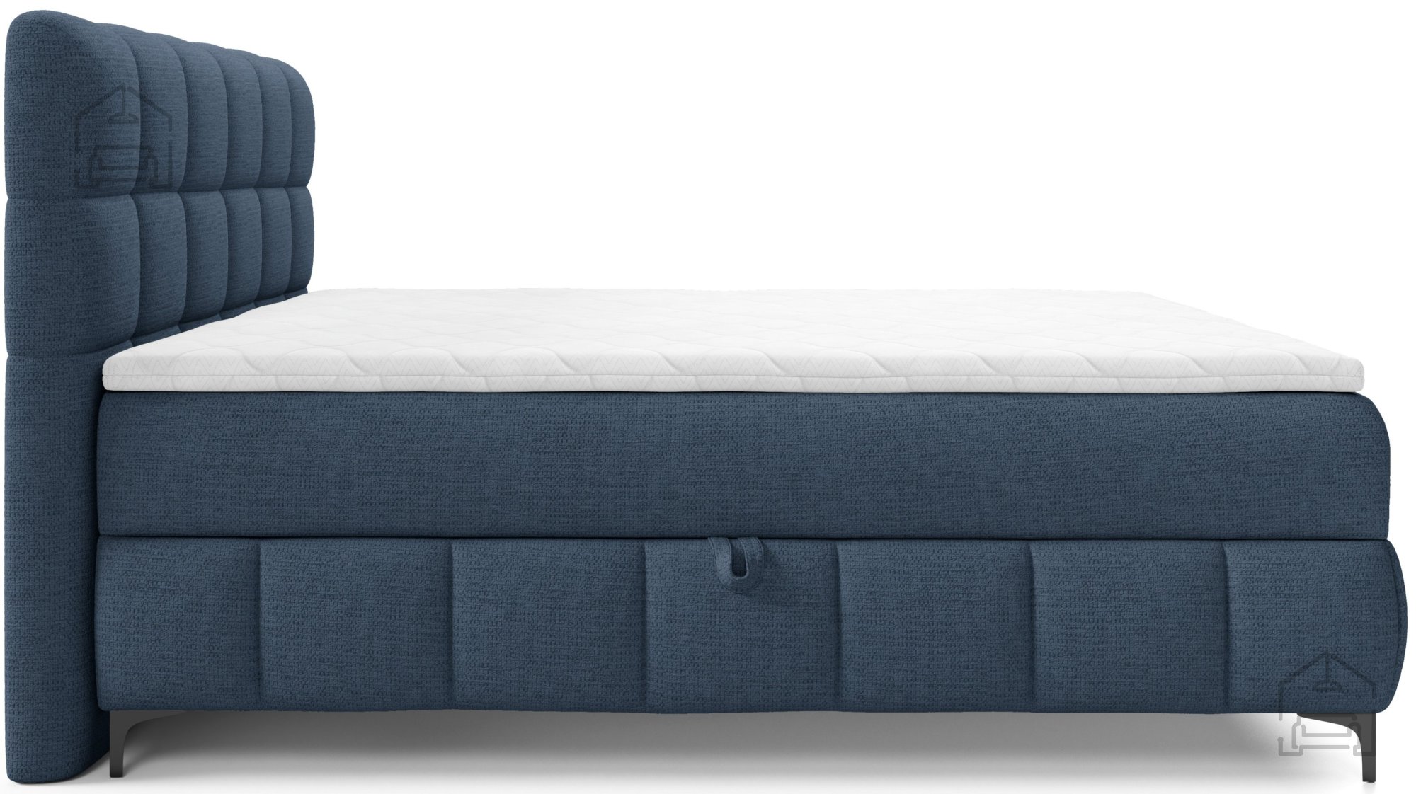 Das Boxspringbett Sophie ist in verschiedenen Farben erhältlich und lässt sich dadurch problemlos mit Ihrer bestehenden Einrichtung kombinieren. Die schwarzen Metallfüße heben das Bett leicht vom Boden ab, was das Reinigen erleichtert und dem Design eine gewisse Leichtigkeit verleiht. Die dekorativen Nähte am Kopfteil und an den Seiten unterstreichen die hochwertige Verarbeitung und bringen eine elegante Note ins Schlafzimmer.