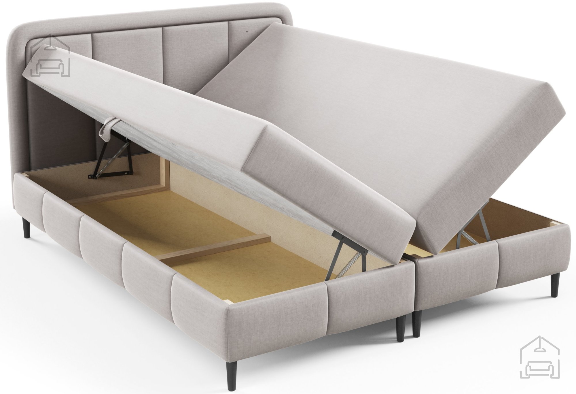 Ein besonderes Highlight des Modells Laura ist der hebemechanismus mit Federunterstützung, der den Zugang zum Bettkasten erleichtert. Unter der Liegefläche befinden sich zwei großzügige Staufächer, ideal zum Verstauen von Bettwäsche, Decken oder saisonaler Kleidung. Das System lässt sich sanft und mühelos öffnen, wodurch die tägliche Nutzung besonders komfortabel ist. Eine clevere Lösung – vor allem für kleinere Schlafzimmer, wo zusätzlicher Stauraum immer willkommen ist.