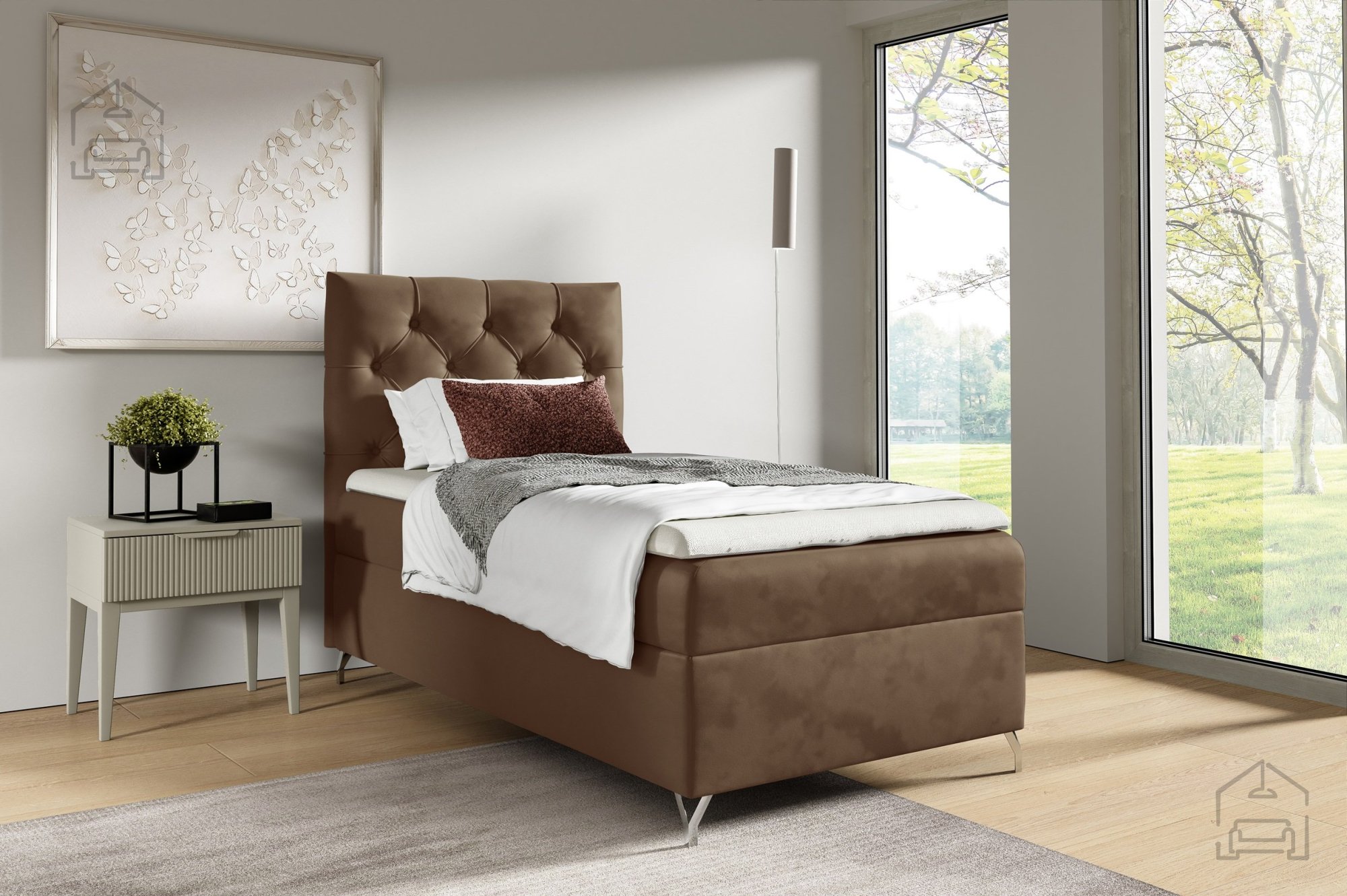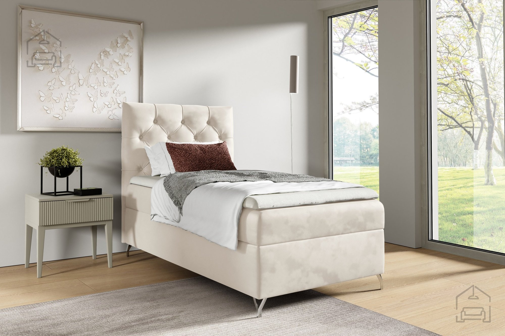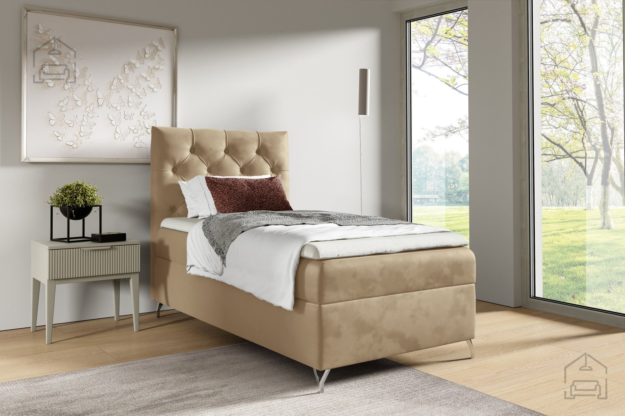 Das Boxspringbett Guliette Mini der Marke Meble Gruška vereint modernes Design mit praktischen Lösungen, die den Alltag komfortabler machen. Gefertigt aus hochwertigen Materialien – Spanplatte, Stoff und T-25-Schaum – überzeugt das Bett durch seine stabile Konstruktion und ein angenehmes Liegegefühl. Dank der verschiedenen Farbvarianten lässt es sich perfekt in unterschiedliche Schlafzimmerstile integrieren – von minimalistisch bis klassisch.