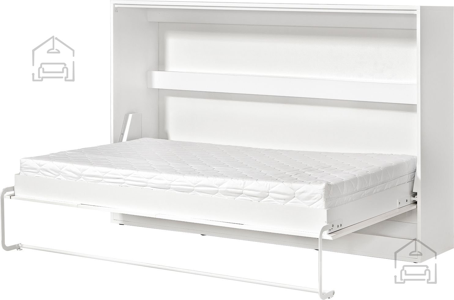 Das Schrankbett Perfect lässt sich vollständig in den Korpus einklappen, sodass der Raum tagsüber frei für andere Aktivitäten bleibt. Durch die horizontale Öffnung wird das Bett in der Breite ausgeklappt – ideal auch für kleinere Zimmer oder Garçonnièren. Dank des schlichten weißen Designs passt es harmonisch sowohl zu modernen als auch zu klassischen Einrichtungen.
