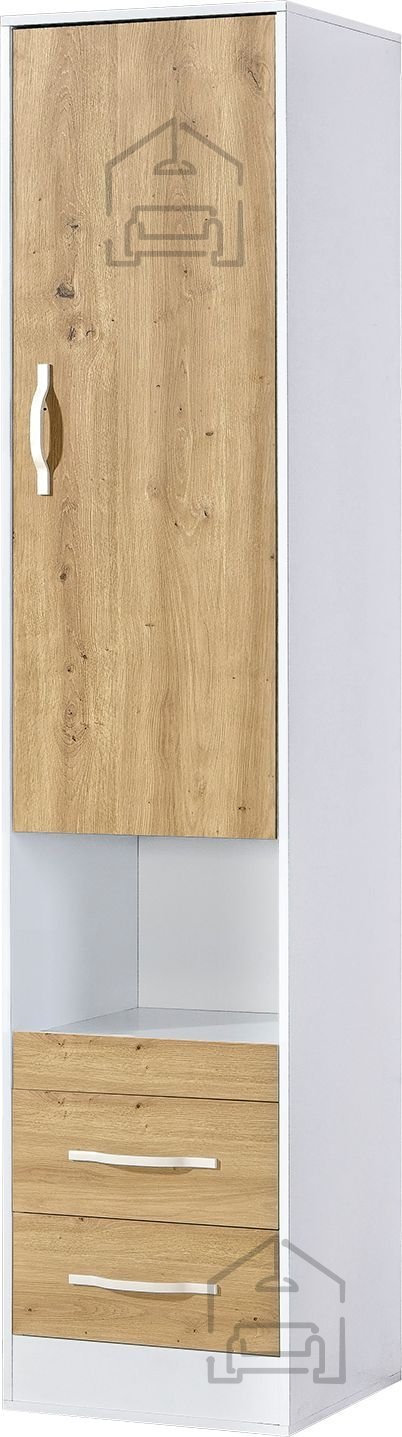 Das Regal Perfect 02 der Marke Domel verbindet das moderne Erscheinungsbild von natürlicher Eiche mit praktischer Funktionalität. Durch sein kompaktes, aber hohes Design mit den Maßen 50,1×50,1×225,2 cm lässt sich der vorhandene Platz im Wohnzimmer, Büro oder Vorraum optimal nutzen. Gefertigt aus hochwertiger Spanplatte überzeugt es durch Stabilität und Langlebigkeit, während die Kombination aus Holzoptik und kontrastierenden Griffen einen markanten, dennoch harmonischen Eindruck hinterlässt.