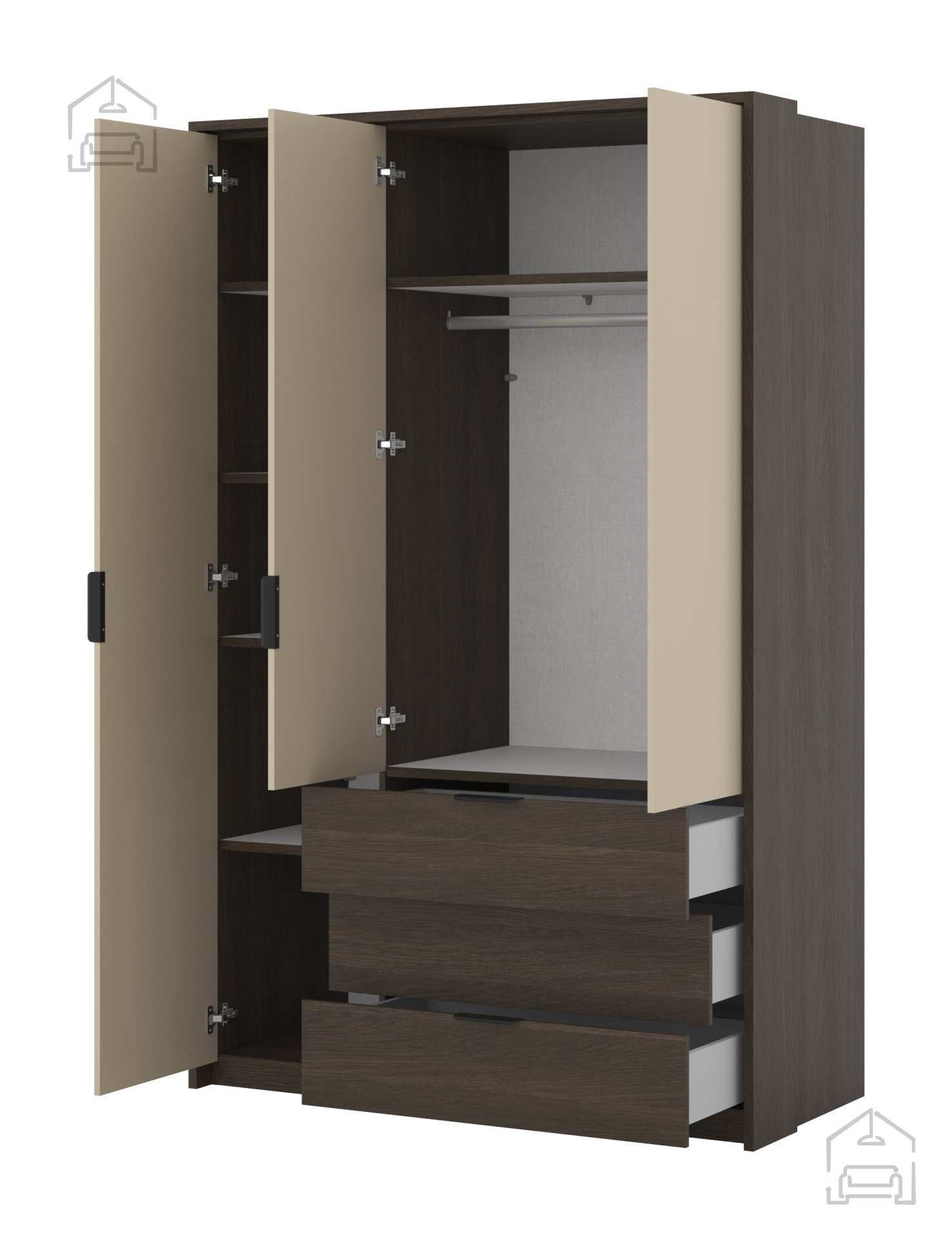 Das Modell Mola 24D1OI19 misst 139 cm in der Breite, 63 cm in der Tiefe und 217 cm in der Höhe – großzügige Maße für den täglichen Gebrauch. Die dreiteilige Konstruktion mit 3 Türen erlaubt eine sinnvolle Trennung von Kleidung und Accessoires. Hinter den Türen befinden sich Einlegeböden und Kleiderstangen, die das Sortieren nach Saison oder Kleidungsart erleichtern. Im unteren Bereich sind 3 praktische Schubladen integriert – perfekt für kleinere Stücke wie Gürtel, Schals oder Unterwäsche. Diese Aufteilung sorgt für Ordnung und schnellen Zugriff auf alle wichtigen Dinge des Alltags.