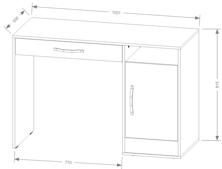 Mit den Maßen 120,1×50×81,5 cm nutzt der Tisch den vorhandenen Raum optimal aus. Er bietet genügend Platz für Computer, Schreibutensilien und andere Arbeitsmaterialien, ohne den Raum zu überladen. Dank seines schlichten, durchdachten Designs eignet er sich sowohl als Schreib- als auch als Computertisch und passt ebenso gut ins Schlafzimmer, Kinderzimmer oder Homeoffice.