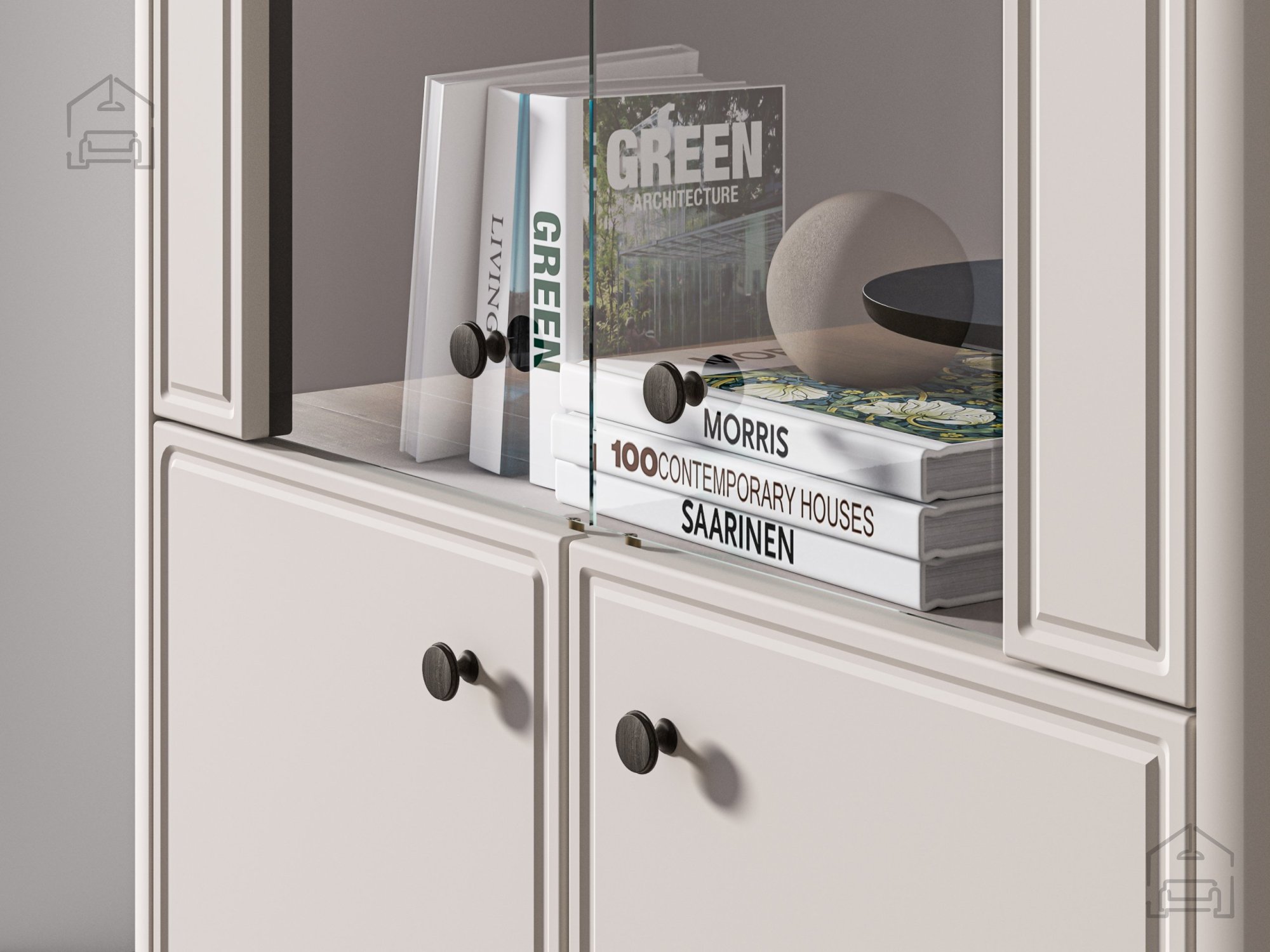 Besonders ins Auge fallen die elegant abgerundeten Kanten, die die Linien weicher wirken lassen und sowohl Sicherheit als auch Raffinesse ausstrahlen. Solche Details findet man selten bei seriengefertigten Möbeln, weshalb diese Kollektion durch ihre sorgfältige Verarbeitung und den handwerklichen Charakter überzeugt. Griffe aus Metall in der Farbe gebürstetes Antikkupfer verleihen einen Hauch von Wärme und Retro-Charme, der perfekt zur modernen klassischen Optik passt.