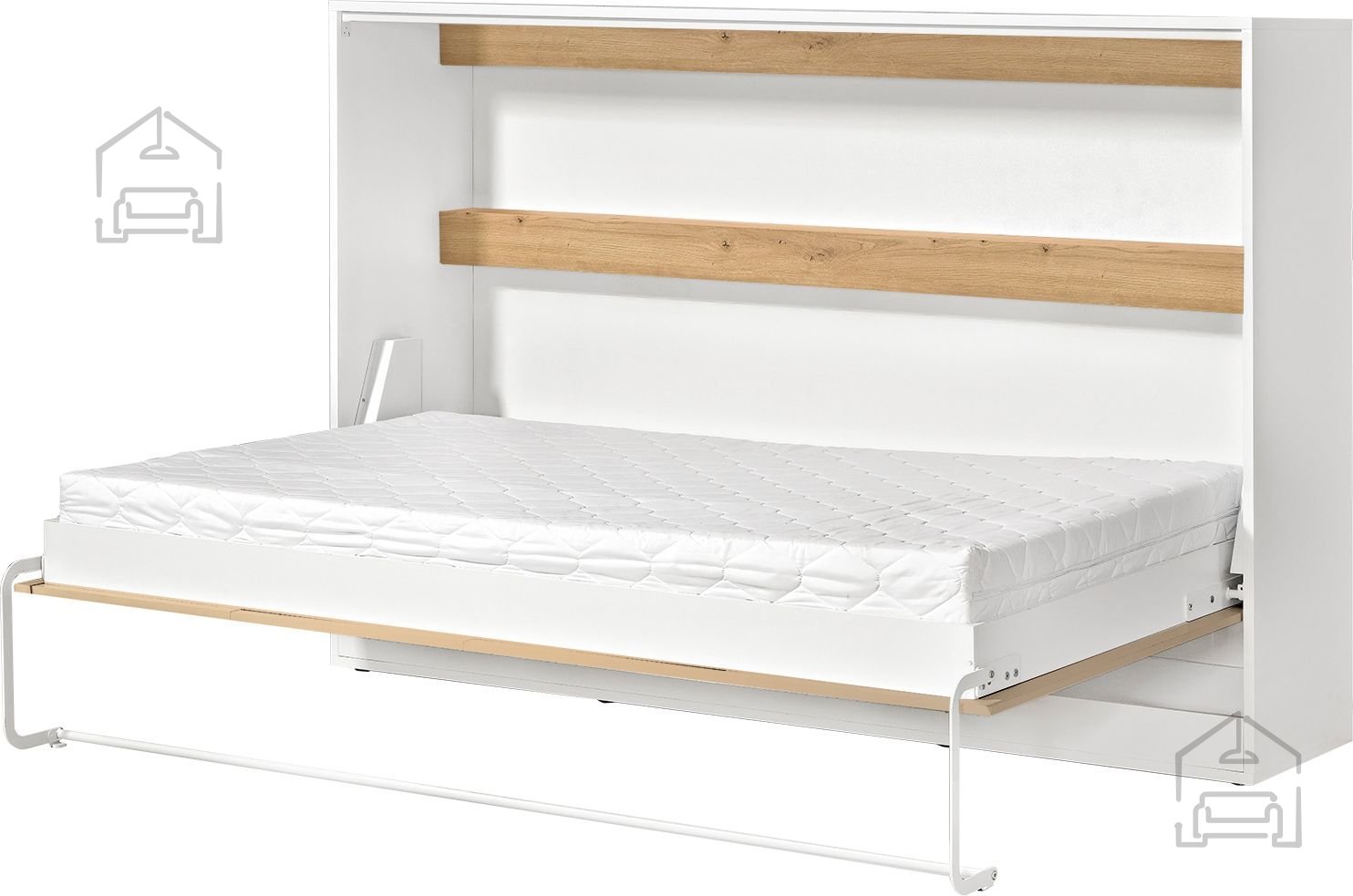 Das horizontale Schrankbett Perfect 120x200 cm der Marke Domel ist eine moderne Lösung für alle, die jeden Zentimeter ihres Raumes optimal nutzen möchten. Mit seiner Farbkombination aus Eiche/Weiß und dem klaren, minimalistischen Design fügt es sich harmonisch in unterschiedliche Einrichtungsstile ein – von modern bis klassisch. Gefertigt aus hochwertiger Spanplatte bietet das Bett Stabilität und Langlebigkeit, während die natürliche Holzoptik für eine warme Ausstrahlung sorgt.