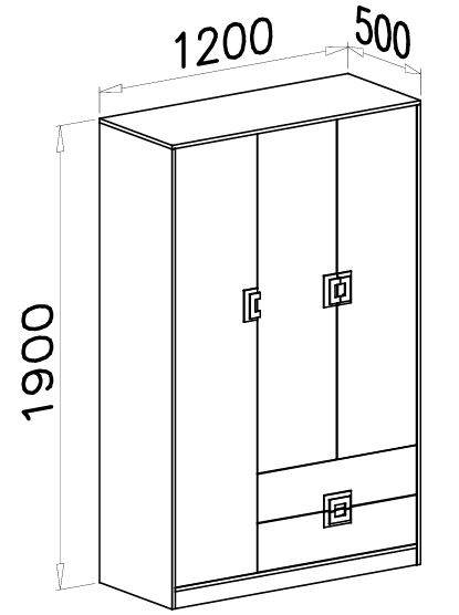 Der Schrank misst 120×50×190 cm und bietet damit ein ausgewogenes Verhältnis zwischen Stauraum und Kompaktheit. Er lässt sich ideal an einer Wand oder in einer Zimmerecke platzieren und nutzt den vorhandenen Platz optimal aus. Mit einer Höhe von 190 cm bietet er ausreichend Platz für hängende Kleidung, während die Einlegeböden ideal für gefaltete Wäsche, Schuhe oder Accessoires sind. Die Breite von 120 cm schafft eine gute Balance zwischen Funktionalität und Leichtigkeit im Raum, und die Tiefe von 50 cm gewährleistet eine gute Übersicht und einfachen Zugriff auf den Inhalt.