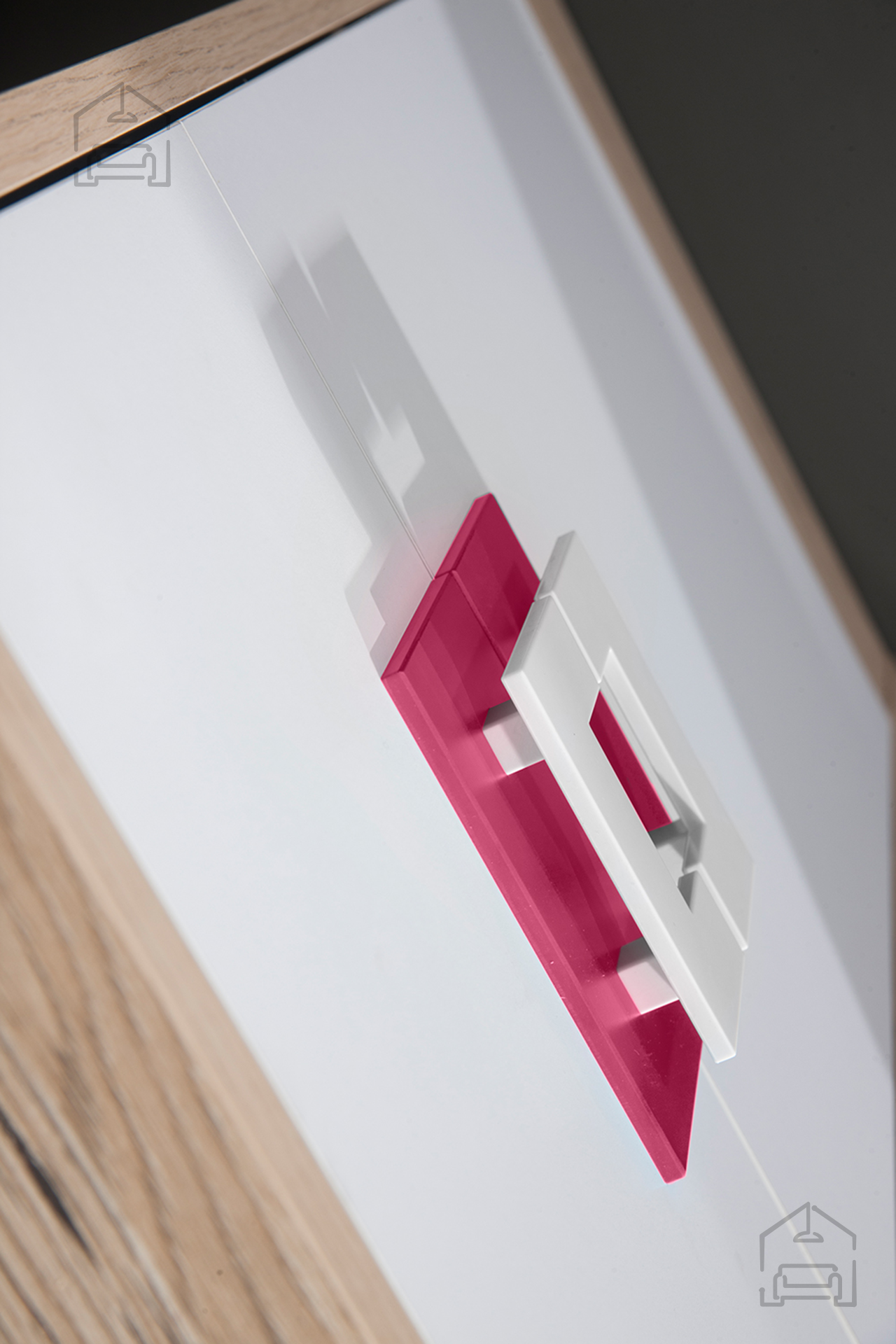 Das Modell Nico 7 überzeugt mit einer harmonischen Kombination aus heller Eiche und Weiß, ergänzt durch roséfarbene Griffe. Diese Farbzusammenstellung schafft einen feinen Kontrast zwischen der warmen Holzoptik und den hellen, frischen Akzenten. Die weißen und roséfarbenen Griffe verleihen der Kommode einen weichen, fröhlichen Charakter, wodurch sie ideal in Kinder-, Jugend- oder modern gestaltete Schlafzimmer passt. Die helle Eiche sorgt für eine natürliche Ausstrahlung und lässt sich wunderbar mit anderen Möbelstücken in ähnlichen Farbtönen kombinieren.