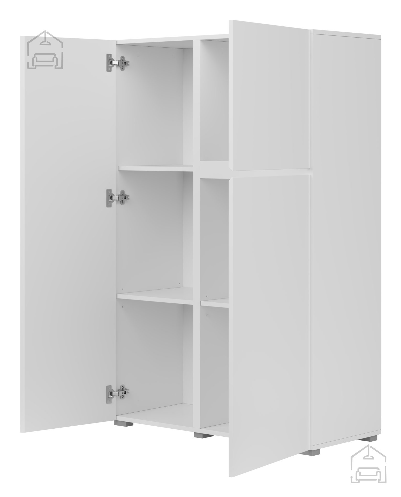 Das Weiß der Kommode Asymetric harmoniert hervorragend mit verschiedensten Einrichtungsstilen – von minimalistisch oder skandinavisch bis hin zu modern-urban. Die helle Oberfläche lässt den Raum größer und freundlicher wirken. Das geometrische Muster auf den Fronten setzt einen dezenten, aber eleganten Akzent, der das Gesamtbild stilvoll abrundet.