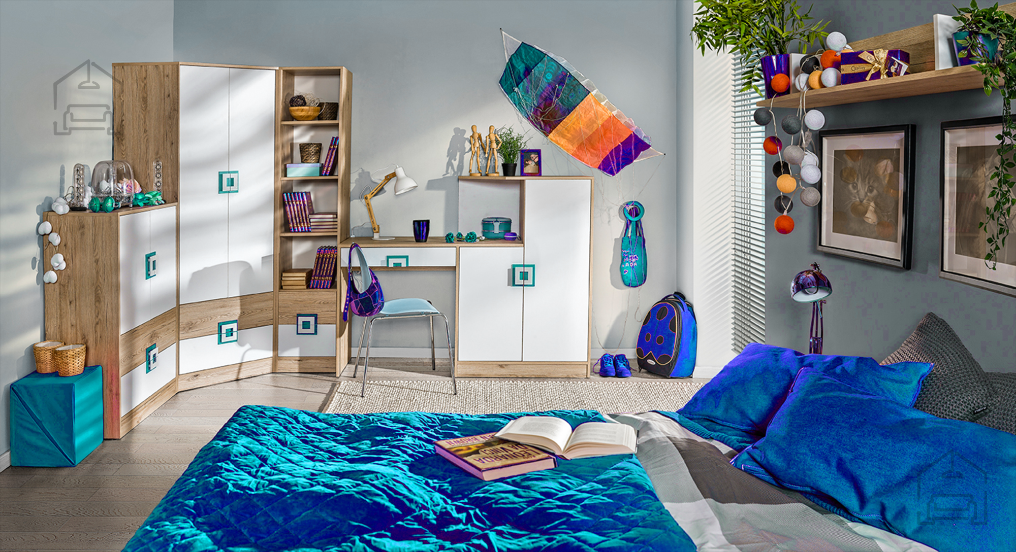 Der Eckschrank Nico 2 eignet sich ideal zur Aufbewahrung von Kleidung, Schuhen oder Alltagsgegenständen. Durch seine Form ist der Inhalt leicht zugänglich, und gleichzeitig bleibt der Raum ordentlich und aufgeräumt. Der Schrank kann mit weiteren Elementen der gleichen Serie kombiniert werden, um ein harmonisches Gesamtbild im Schlafzimmer, Jugendzimmer oder Vorzimmer zu schaffen. Die Innenaufteilung (je nach Serie) umfasst üblicherweise einen Bereich zum Aufhängen sowie Ablagefächer, wodurch sich der Stauraum an individuelle Bedürfnisse anpassen lässt.