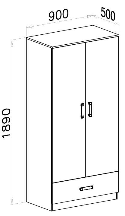 Mit einer Höhe von 189 cm nutzt der Schrank den vorhandenen Raum optimal aus, während die Breite von 90 cm auch in kleinere Zimmer passt. Die Tiefe von 50 cm bietet ausreichend Platz, um Kleidung knitterfrei aufzuhängen.