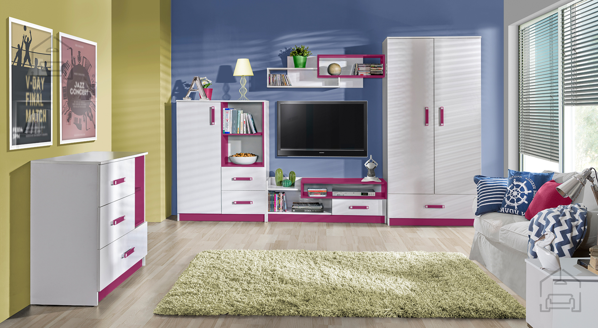 Auch wenn die RTV-Kommode Trafiko 10 in erster Linie fürs Wohnzimmer gedacht ist, passt sie dank ihres klaren Designs und der kompakten Maße ebenso gut in Jugendzimmer, Schlafzimmer oder Büros. Die weiße Farbe lässt den Raum größer wirken, während die rosafarbenen Details eine persönliche Note einbringen. Durch die schlichte Form lässt sich die Kommode leicht mit anderen Möbelstücken derselben Serie oder mit minimalistischen Elementen in ähnlichen Farbtönen kombinieren.