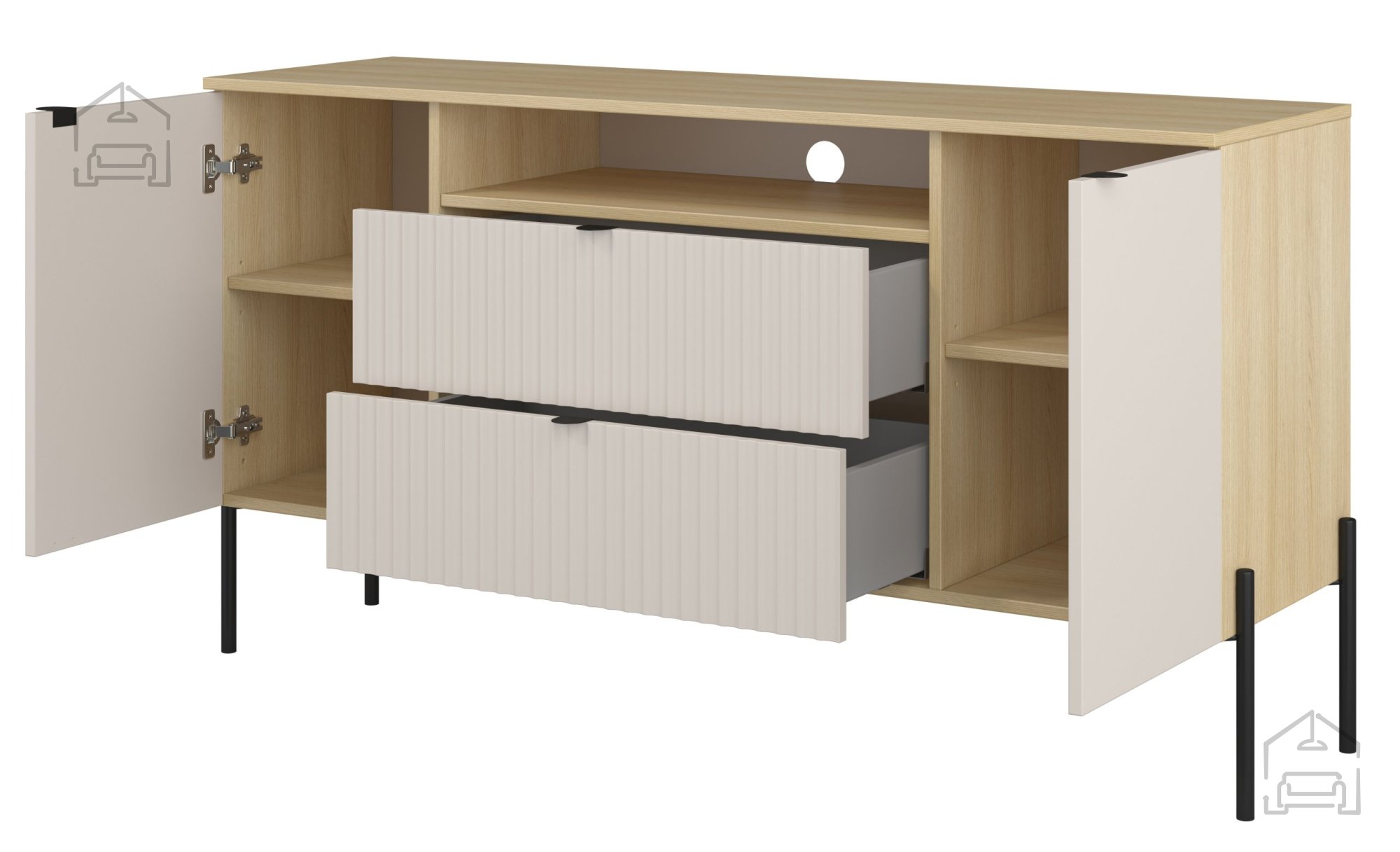 Der Korpus für die TV-Kommode Ore – Helvetia meble ist eine ausgezeichnete Wahl für alle, die ein funktionales, stilvolles und hochwertig verarbeitetes Möbelstück suchen. Die Kombination aus natürlicher Holzoptik und Metallelementen bringt Wärme und modernen Charakter in den Raum, während die modulare Bauweise maximale Anpassung an Ihre Wohnbedürfnisse ermöglicht.