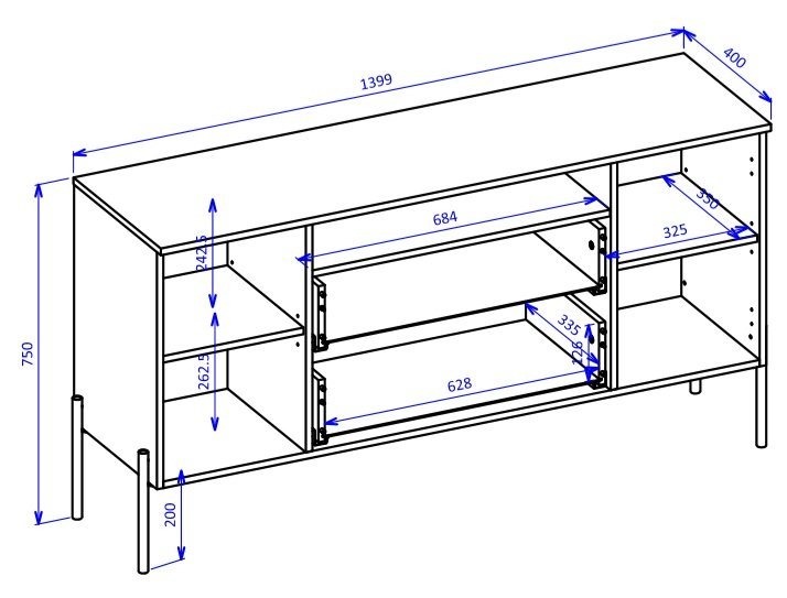 Laminierte Platte 15 mm und Metallbeine 270 mm: Korpus für TV-Kommode Ore – Helvetia.