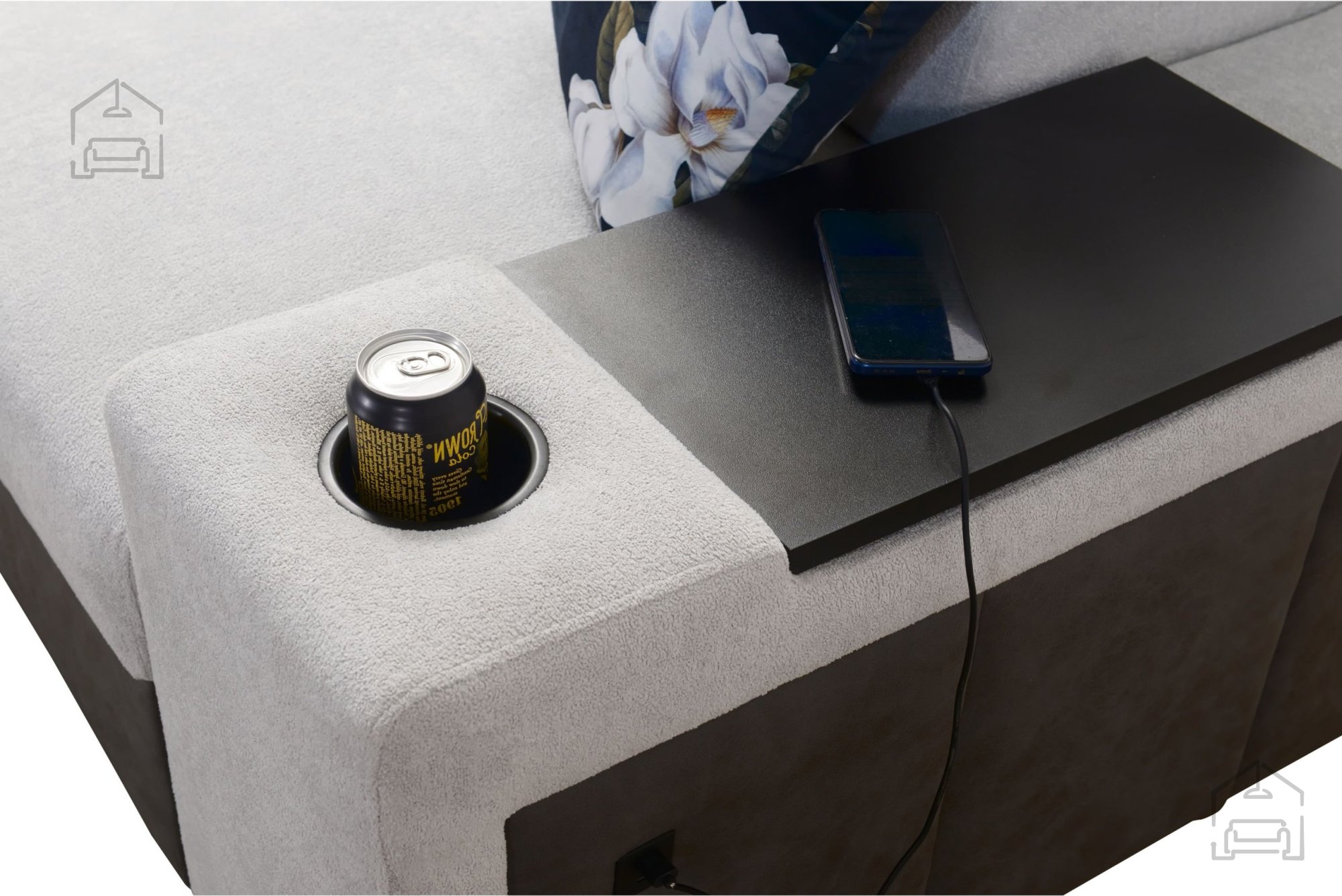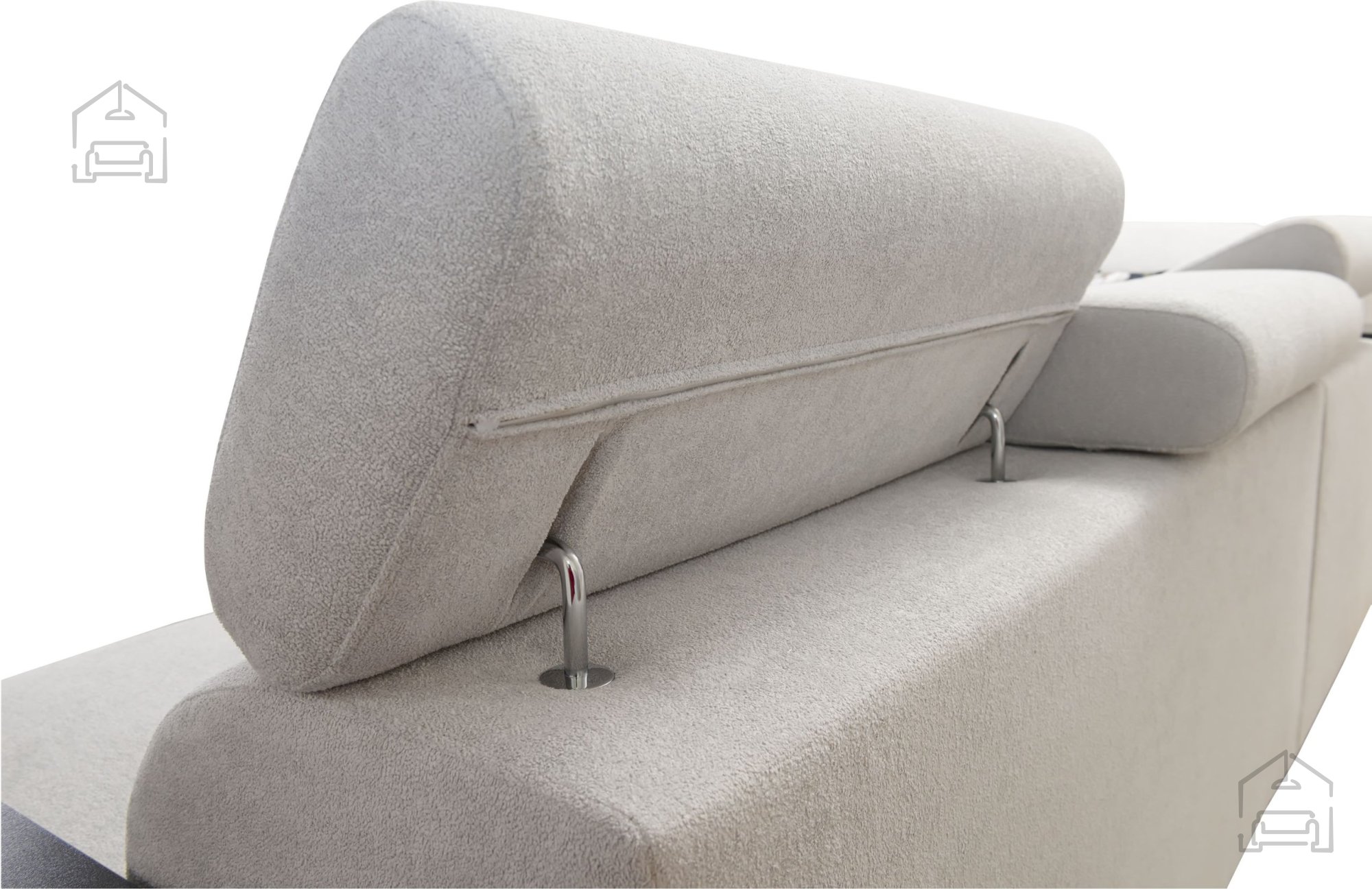 Auf den Fotos ist die Garnitur in den Stoffkombinationen Freya 18 und Tauro 8207 dargestellt. Die Stoffe sind strapazierfähig, angenehm im Griff und abriebfest. Diese Materialien werden vom Hersteller häufig auch für Zierkissen verwendet, die auf Wunsch mit Reißverschluss (Aufpreis 70 PLN) bestellt werden können. Die Liegefläche kann farblich an den gesamten Couchbezug angepasst werden, wodurch ein harmonisches Gesamtbild entsteht.