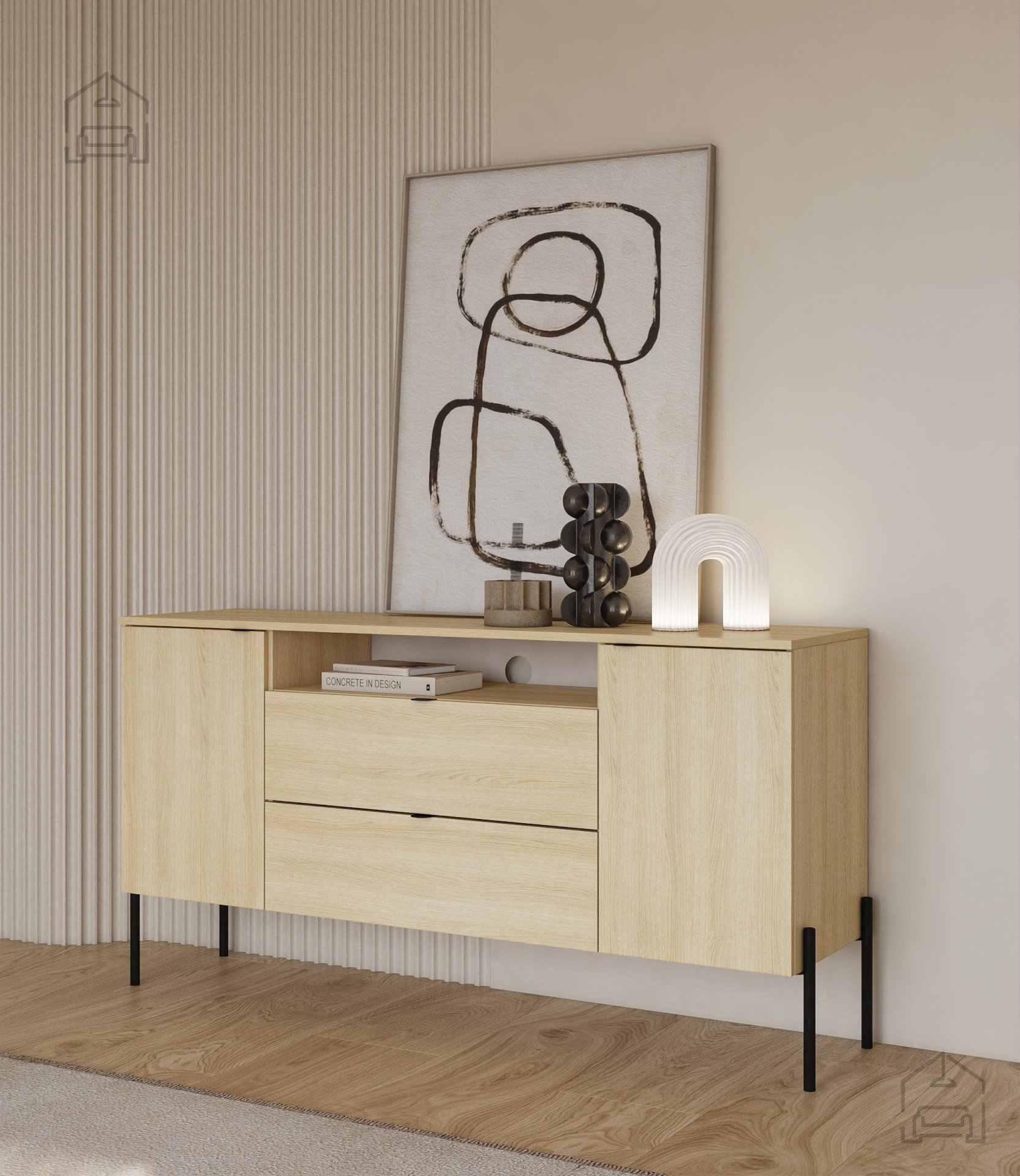 Die Kommode Ore wurde für einen modernen Lebensstil entworfen. Klare Linien und dezente Farbtöne sorgen dafür, dass sie sich mühelos in bestehendes Mobiliar einfügt oder als Blickfang fungiert. Der Eichenton mit feiner Holzstruktur bringt Wärme in den Raum, während die schwarzen Metallbeine einen Hauch von Industrial-Charakter hinzufügen. Diese Materialkombination schafft ein ausgewogenes Erscheinungsbild, das sowohl in minimalistischen als auch in klassisch eingerichteten Interieurs gut zur Geltung kommt.