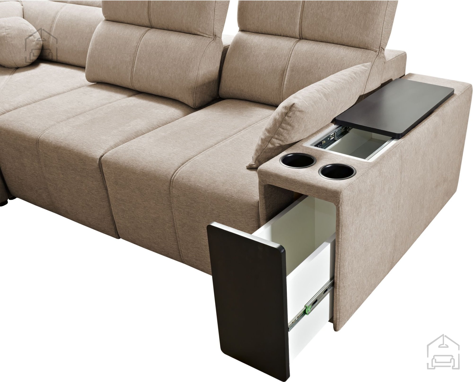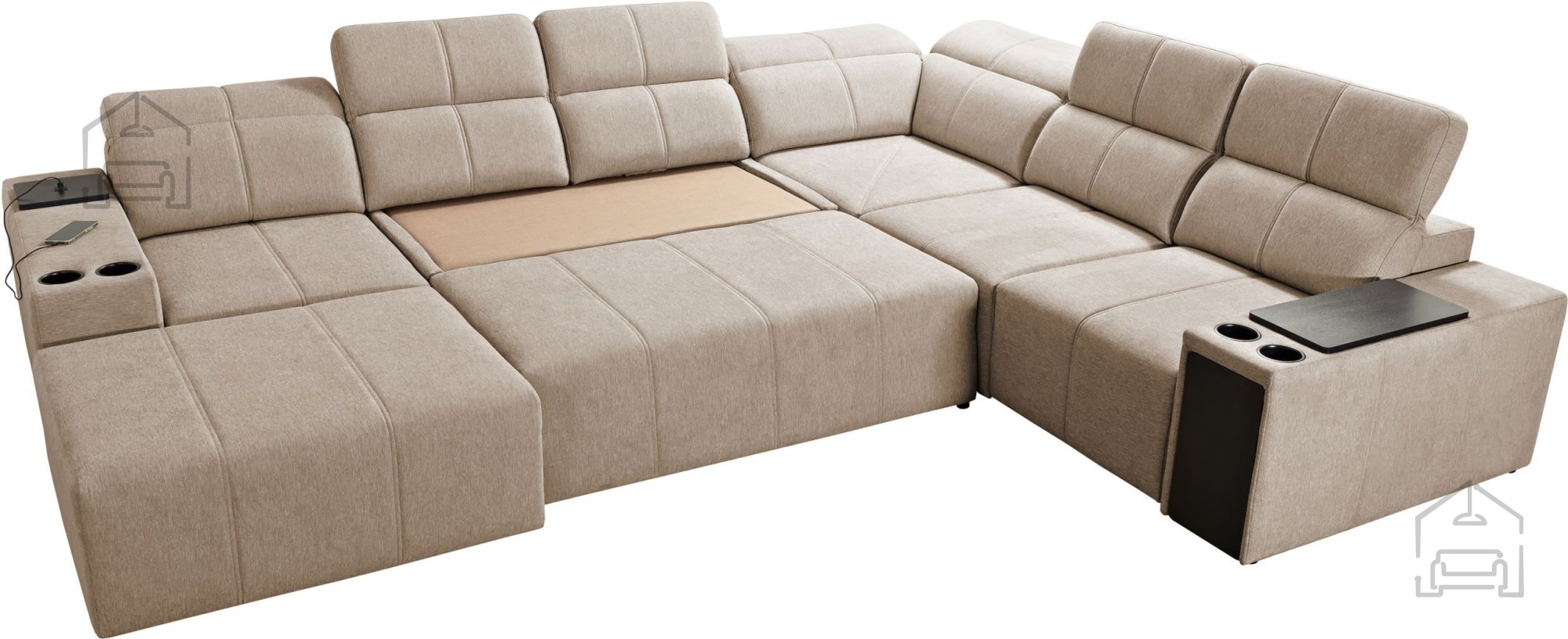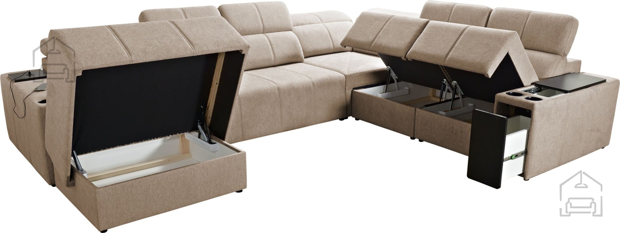Die Mindy VIII ist mit dem Dolphin-Mechanismus ausgestattet, der eine schnelle und unkomplizierte Umwandlung in eine Liegefläche ermöglicht. Das Bettmaß beträgt 284x138 cm – ausreichend Platz für zwei Personen. Das Auszugsystem funktioniert automatisch und lässt sich ohne großen Kraftaufwand bedienen. Zusätzlich verfügt die Garnitur über drei großzügige Bettzeugladen, die praktischen Stauraum für Decken, Kissen oder andere Utensilien bieten.