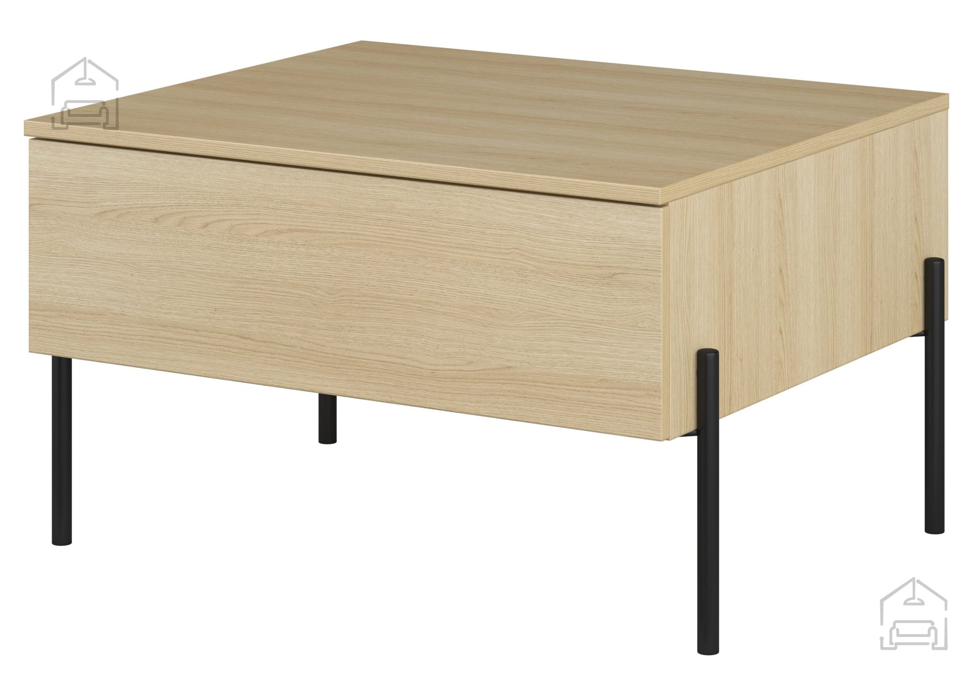 Der elegante und moderne Couchtisch Ore der Marke Helvetia meble in der Farbe Eiche Lindberg/Kaschmir vereint Funktionalität und Stil und lässt sich mühelos in verschiedenste Wohnstile integrieren. Die Kombination aus einer hochwertigen laminierten Platte mit 15 mm Stärke und einem stabilen Metallgestell sorgt für Robustheit und Standfestigkeit. Durch die sorgfältige Materialauswahl ist der Tisch langlebig und leicht zu pflegen. Mit seinen kompakten Maßen von 70 × 61,5 × 43 cm bietet er ausreichend Ablagefläche, ohne im Raum viel Platz einzunehmen.