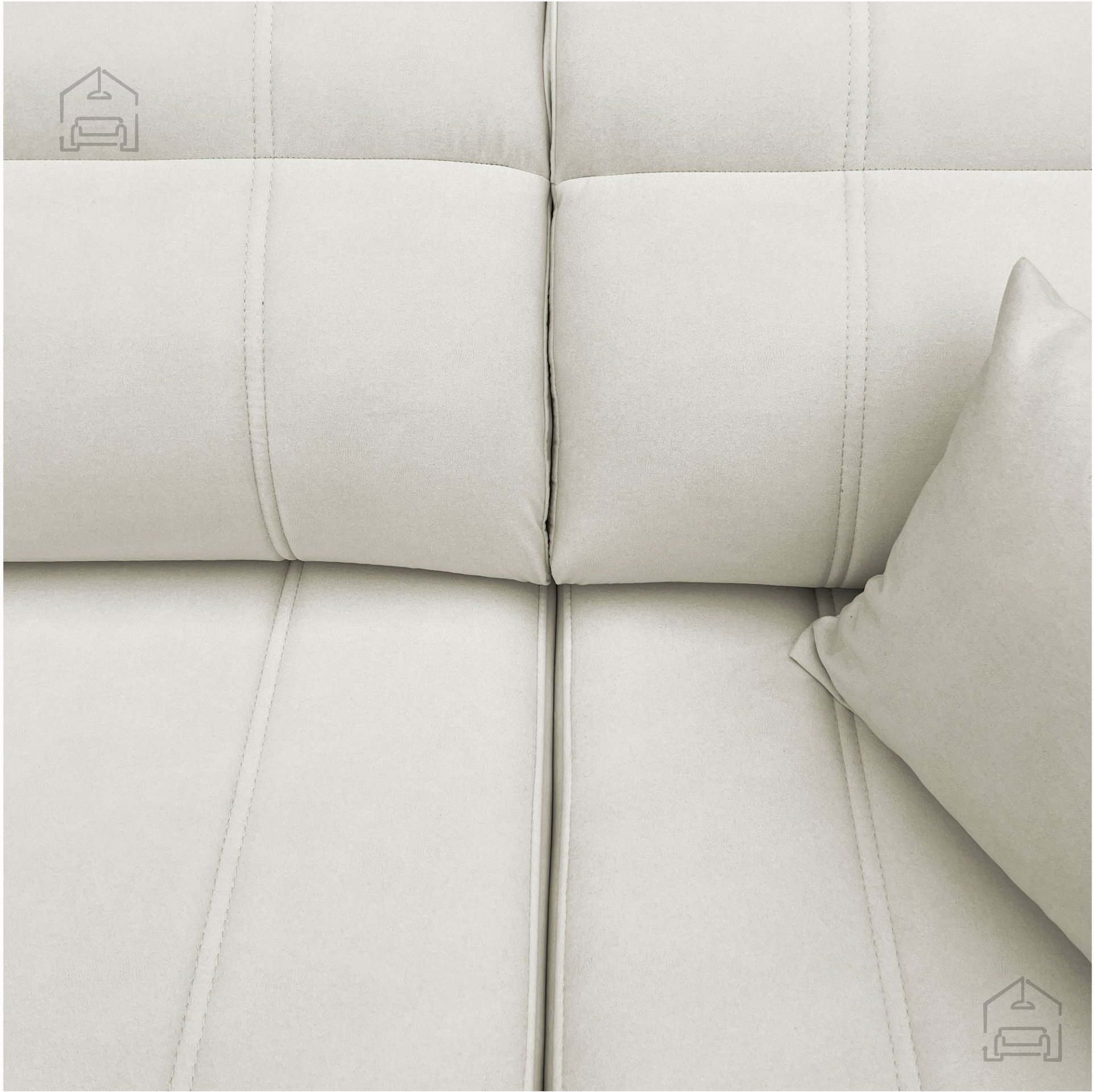 Der Rahmen des Sofas Dafne besteht aus robustem Holz, kombiniert mit hochwertigen Spanplatten, was Stabilität und Langlebigkeit garantiert. Die Sitzflächen sind mit einem System aus Wellenfedern ausgestattet, das zusammen mit dem 10 cm starken T-30-Schaumstoff für optimalen Sitzkomfort und Unterstützung sorgt. Auch die Liegefläche ist mit etwa 7 cm starkem, verstärktem T-30-Schaum gepolstert, wodurch eine angenehme und gleichmäßige Schlafunterlage entsteht.