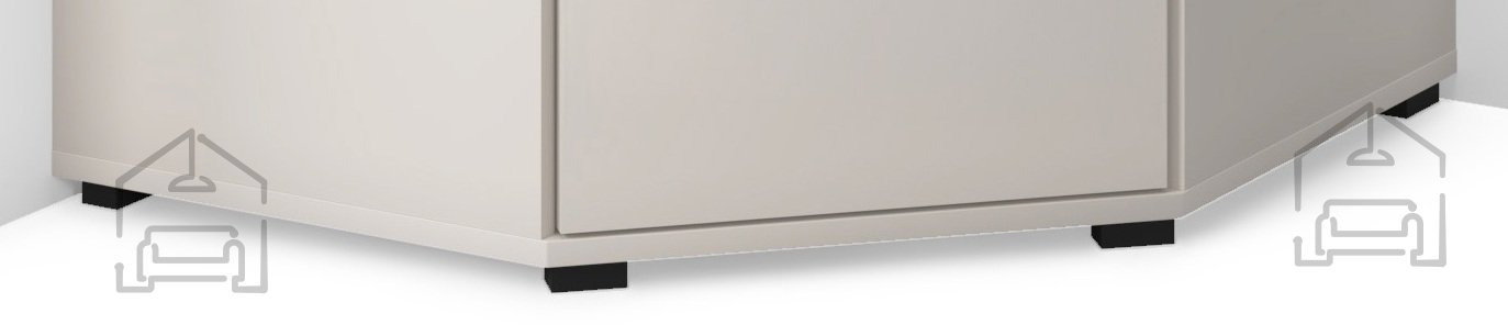 Schwarze Kunststoffkomponenten: Kunststofffüße für Eckgarderobenschränke Bianco – PKMebel.
