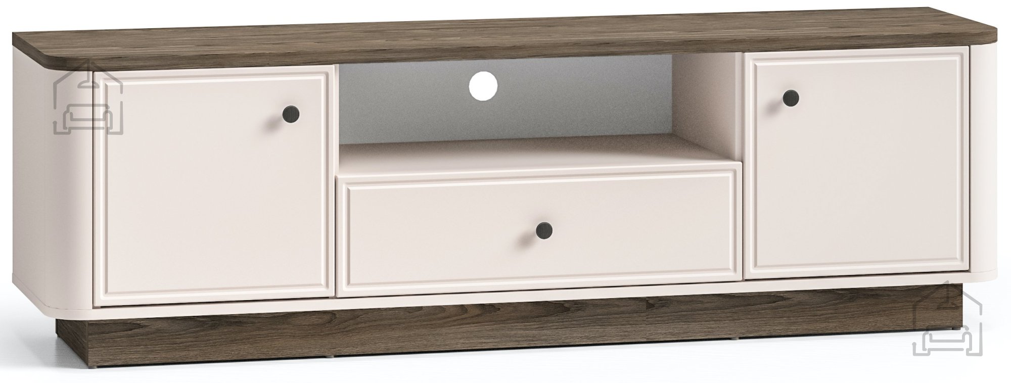 Die TV-Kommode Vilavio 05 – ML Meble ist die ideale Wahl für alle, die Wert auf Ästhetik, Funktionalität und Qualität legen. Ihr eleganter Farbkontrast, die Metallgriffe in gebürstetem Kupfer und die abgerundeten Kanten verleihen ihr eine besonders stilvolle Ausstrahlung. Mit den Maßen 160 × 40 × 50 cm und einer durchdachten Innenaufteilung bietet sie ausreichend Platz für alles, was Sie im Wohn- oder Schlafzimmer benötigen. Die polnische Herstellung und die hochwertigen Materialien gewährleisten, dass diese Kommode lange ein funktionaler und schöner Bestandteil Ihres Zuhauses bleibt.