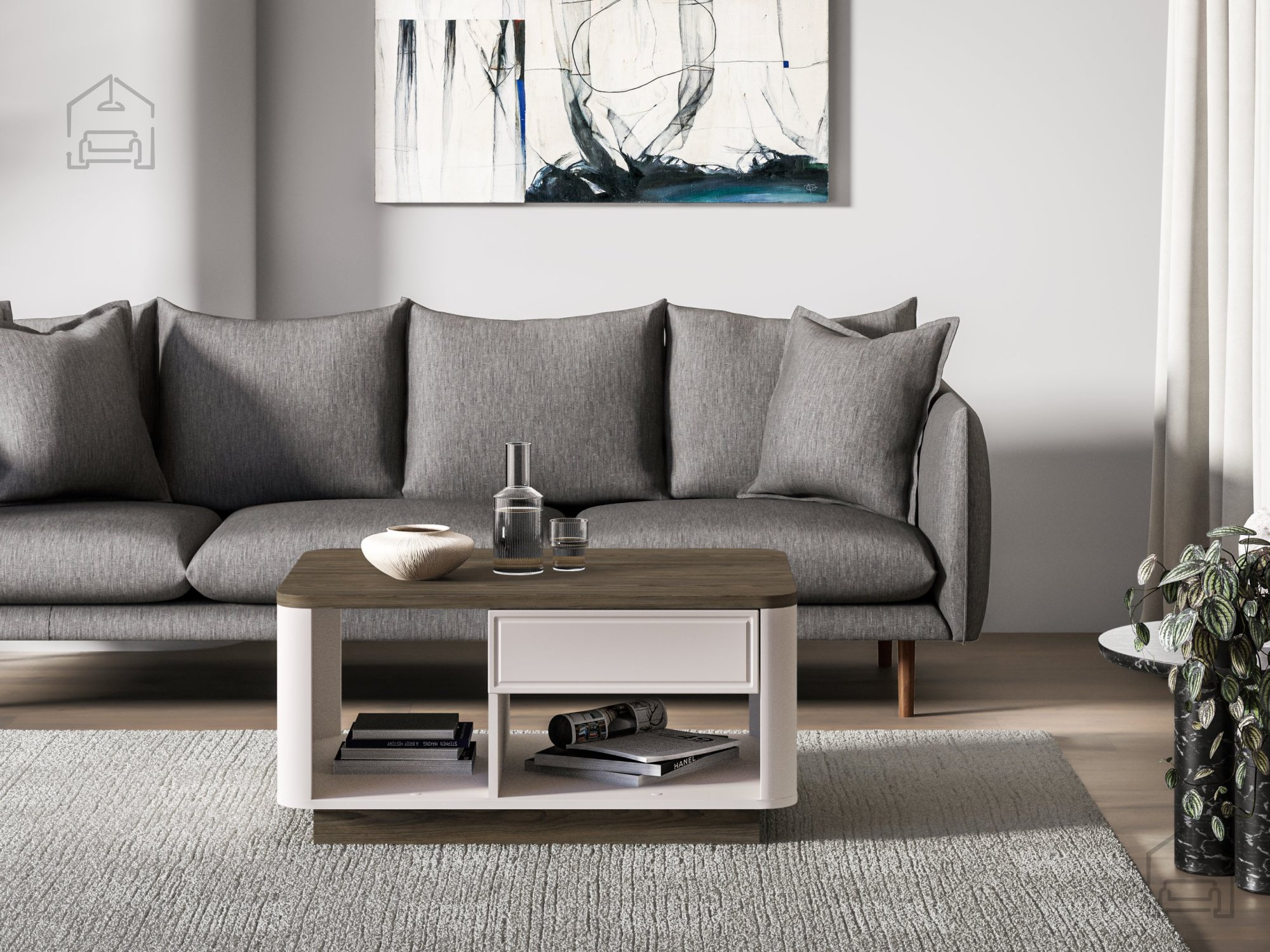 Der Couchtisch Vilavio 05 steht für eine gelungene Verbindung von Ästhetik, Funktionalität und Verarbeitungsqualität. Sein charakteristisches Erscheinungsbild – geprägt vom Zusammenspiel aus dunkler Eiche, Kaschmir und Weiß – macht ihn zum attraktiven Mittelpunkt des Wohnraums. Mit Glasplatte, Metallgriffen und abgerundeten Kanten bietet er alles, was ein modernes Zuhause braucht: Stil, Sicherheit und einfache Pflege. Wenn Sie einen Couchtisch suchen, der sich harmonisch in Ihr Interieur einfügt und dennoch eine edle Note setzt, ist der Vilavio 05 von ML Meble die perfekte Wahl für Sie.
