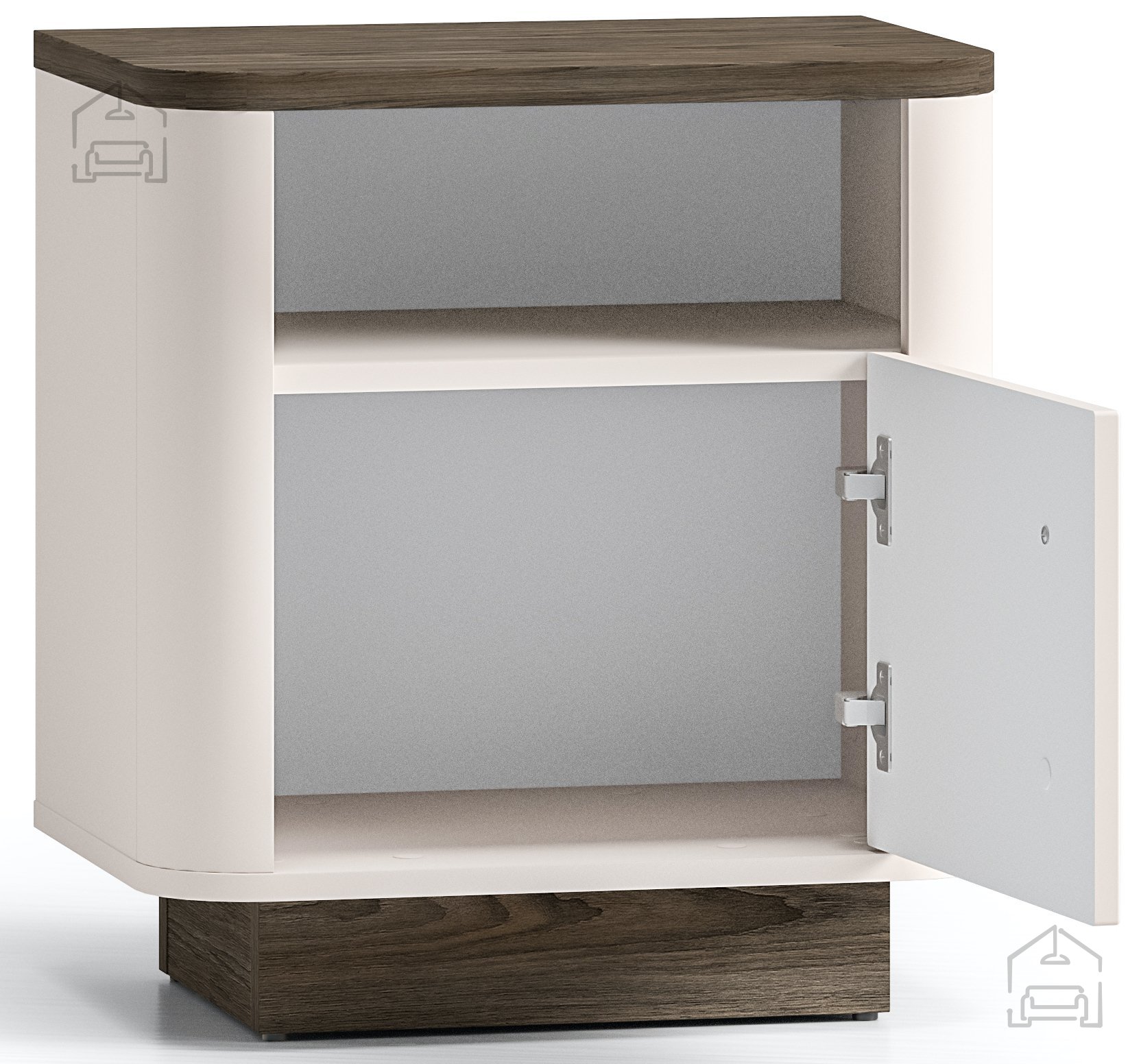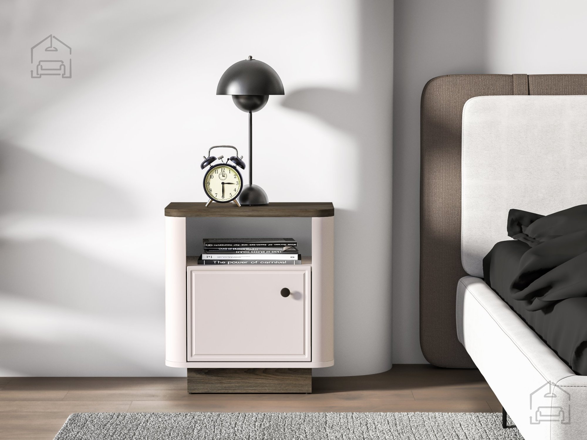 Die Farbpalette in den Nuancen Windmill Dunkleiche, Kaschmir und Weiß sorgt für einen ausgewogenen Kontrast zwischen der natürlichen Wärme des Holzes und den hellen Flächen. So lässt sich der Nachttisch mühelos in verschiedenste Einrichtungsstile integrieren – von skandinavisch-minimalistisch bis traditionell.