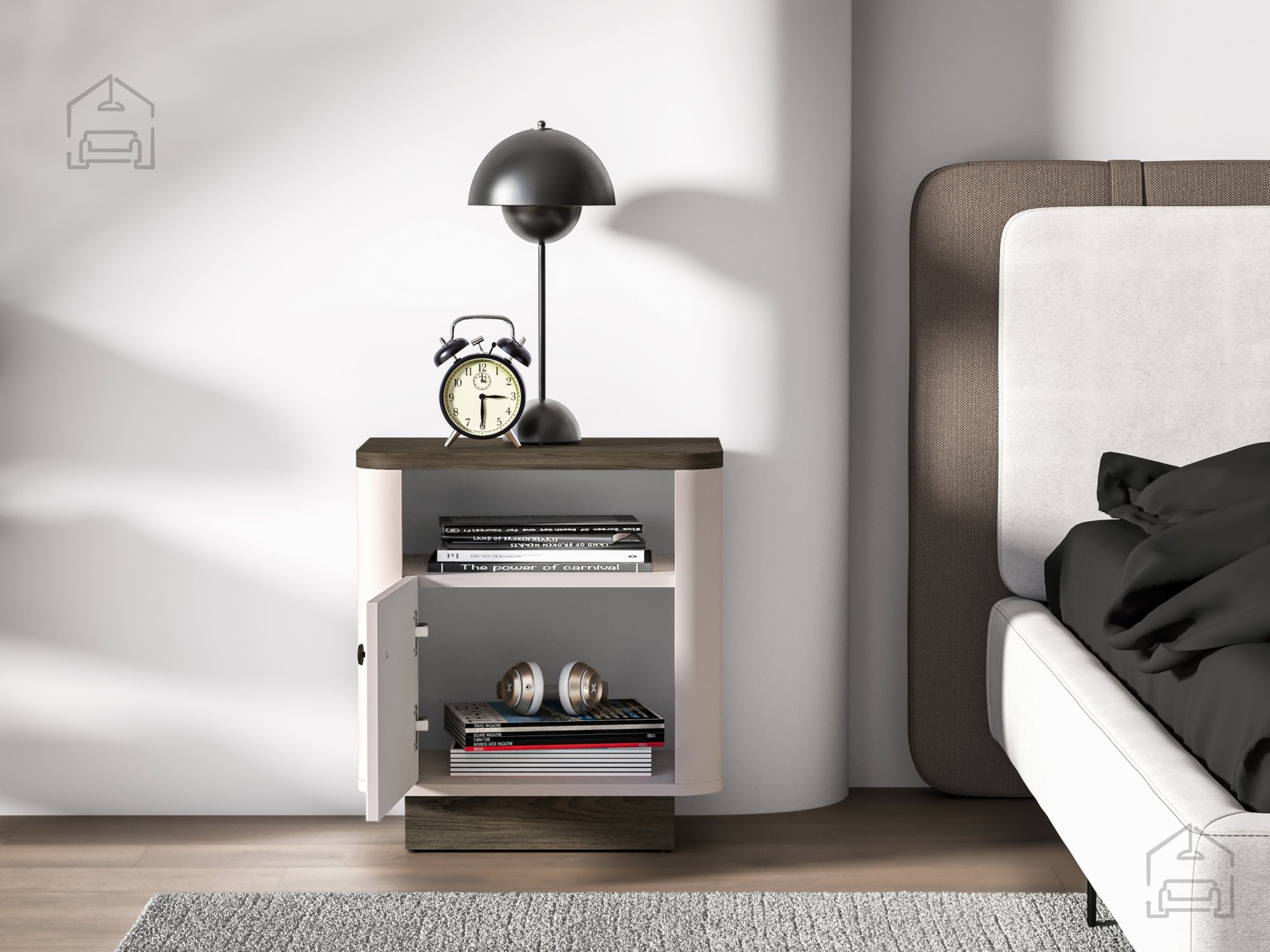 Ob im Schlafzimmer, im Wohnbereich oder im Vorraum – dieser Nachttisch bringt Ordnung und eine warme Atmosphäre in Ihr Zuhause. Hergestellt in Polen unter der Marke ML Meble, zeigt er, wie sich moderne Technik, hochwertige Materialien und ästhetisches Design zu einem eleganten Möbelstück vereinen lassen.