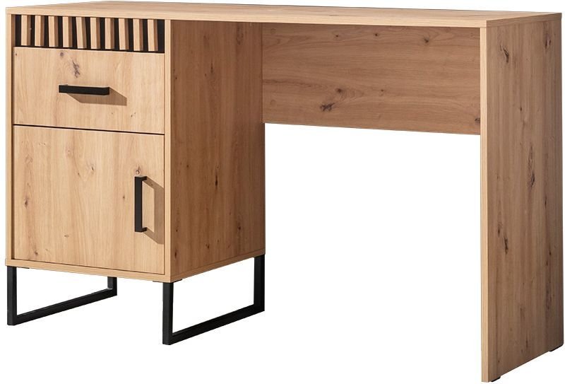 Der Schreibtisch Lamelix 09 von Domel vereint die warme Ausstrahlung der Eichenoptik Artisan mit durchdachter Funktionalität – ideal für den Einsatz zu Hause oder im Büro. Gefertigt in Polen im Werk Domel überzeugt er durch eine stabile Bauweise und ausgewogene Proportionen, die eine angenehme Nutzung im Alltag ermöglichen. Die Oberfläche aus 16 mm starker, laminierten Spanplatte ist robust und leicht zu reinigen – perfekt für Arbeits- oder Studienräume, in denen Langlebigkeit und ansprechendes Design gleichermaßen zählen.