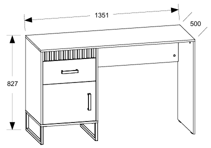Die Gesamtabmessungen des Tisches betragen 135,1×50×82,7 cm und bieten ausreichend Platz für Computer, Schreibutensilien oder Dekoration. Das ausgewogene Verhältnis von Länge und Tiefe sorgt für eine optimale Raumausnutzung – egal, ob der Tisch an der Wand steht oder frei im Raum platziert wird. Mit einer Höhe von 82,7 cm ermöglicht er eine ergonomische Arbeitshaltung und entlastet Rücken und Schultern auch bei längerem Sitzen.
