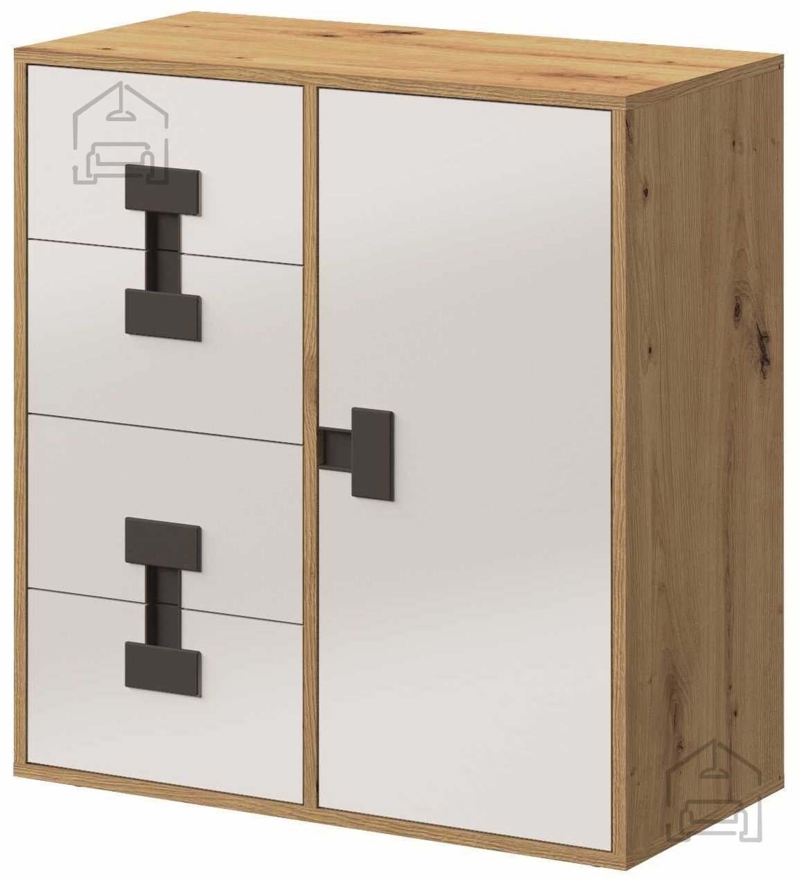 Die Kommode Index 07 ist ein modernes Möbelstück, das mit ihrem schlichten, aber stilvollen Design Funktionalität und Ästhetik harmonisch vereint. Mit den Maßen 80,1 × 40 × 84,7 cm passt sie perfekt in verschiedene Wohnbereiche – ob ins Wohnzimmer, Schlafzimmer oder den Vorraum. Gefertigt aus hochwertiger, laminierter Spanplatte mit einer Stärke von 16 mm, überzeugt sie durch Stabilität und Langlebigkeit. Die Oberfläche in Weiß Hochglanz und Eiche Artisan bringt Helligkeit und eine angenehme, natürliche Wärme in den Raum.