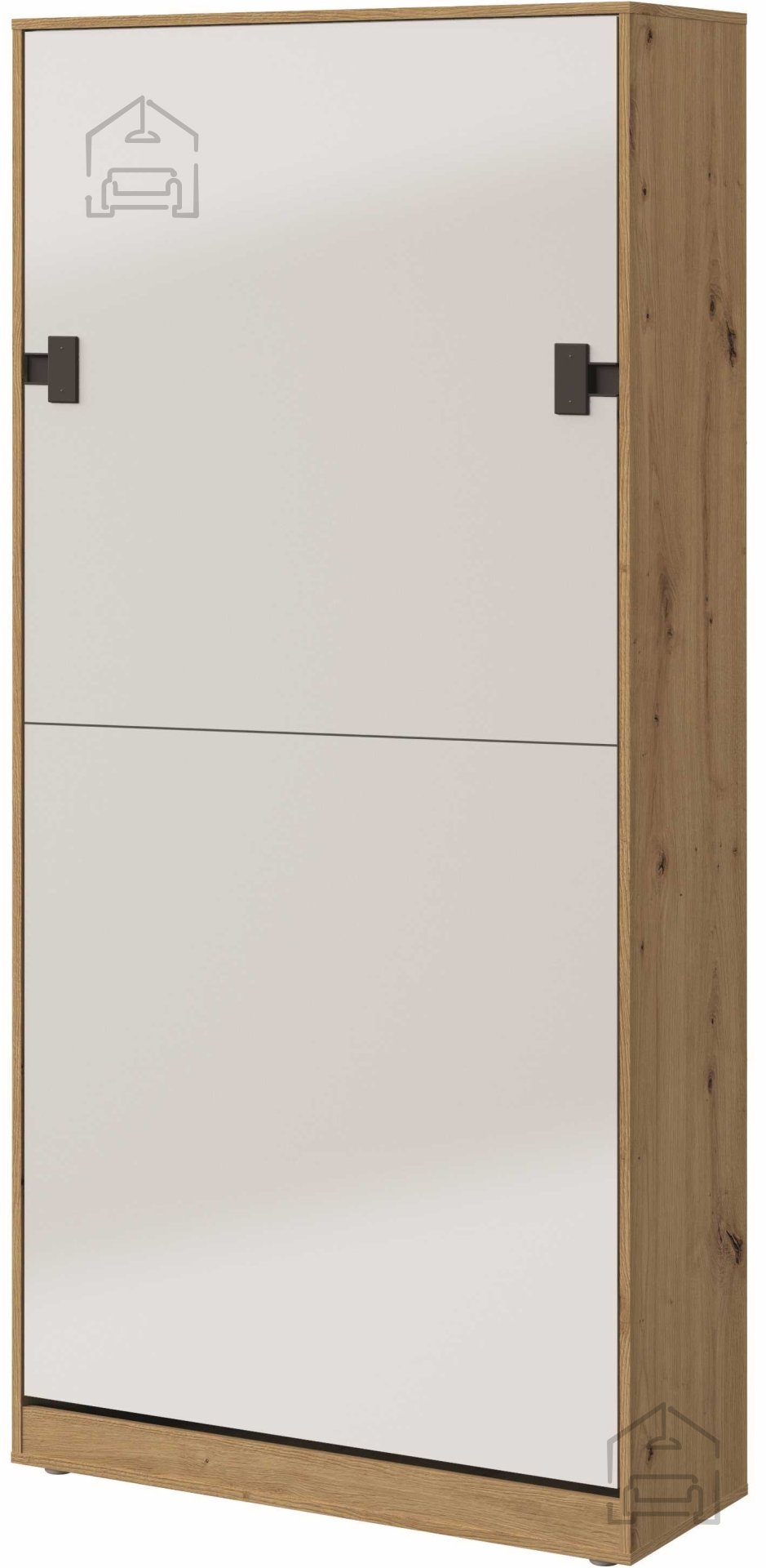 Das vertikale Schrankbett Index 19 der Marke Domel ist eine moderne Lösung für Räume, in denen jeder Zentimeter zählt. Es wurde für Menschen entwickelt, die Funktionalität, hochwertige Materialien und ein ansprechendes Design schätzen. Mit seinen kompakten Maßen von 103,3 × 40,1 × 218,6 cm bietet das Bett eine komfortable Liegefläche von 90 × 200 cm und benötigt im eingeklappten Zustand nur wenig Platz. Die Kombination aus Weiß und Eiche Artisan verleiht dem Möbelstück einen warmen, zeitgemäßen Charakter, der sich harmonisch in viele Einrichtungsstile einfügt.
