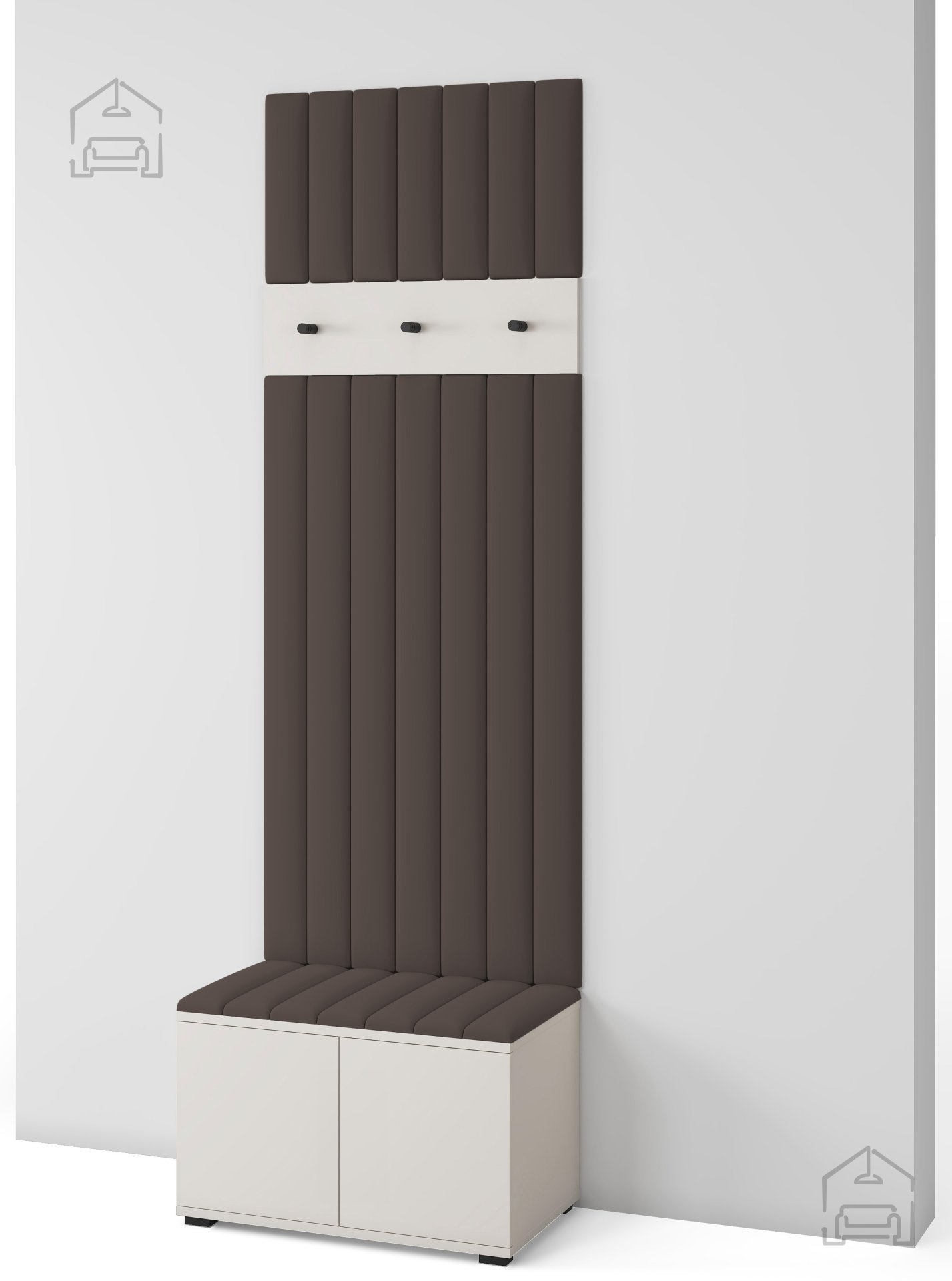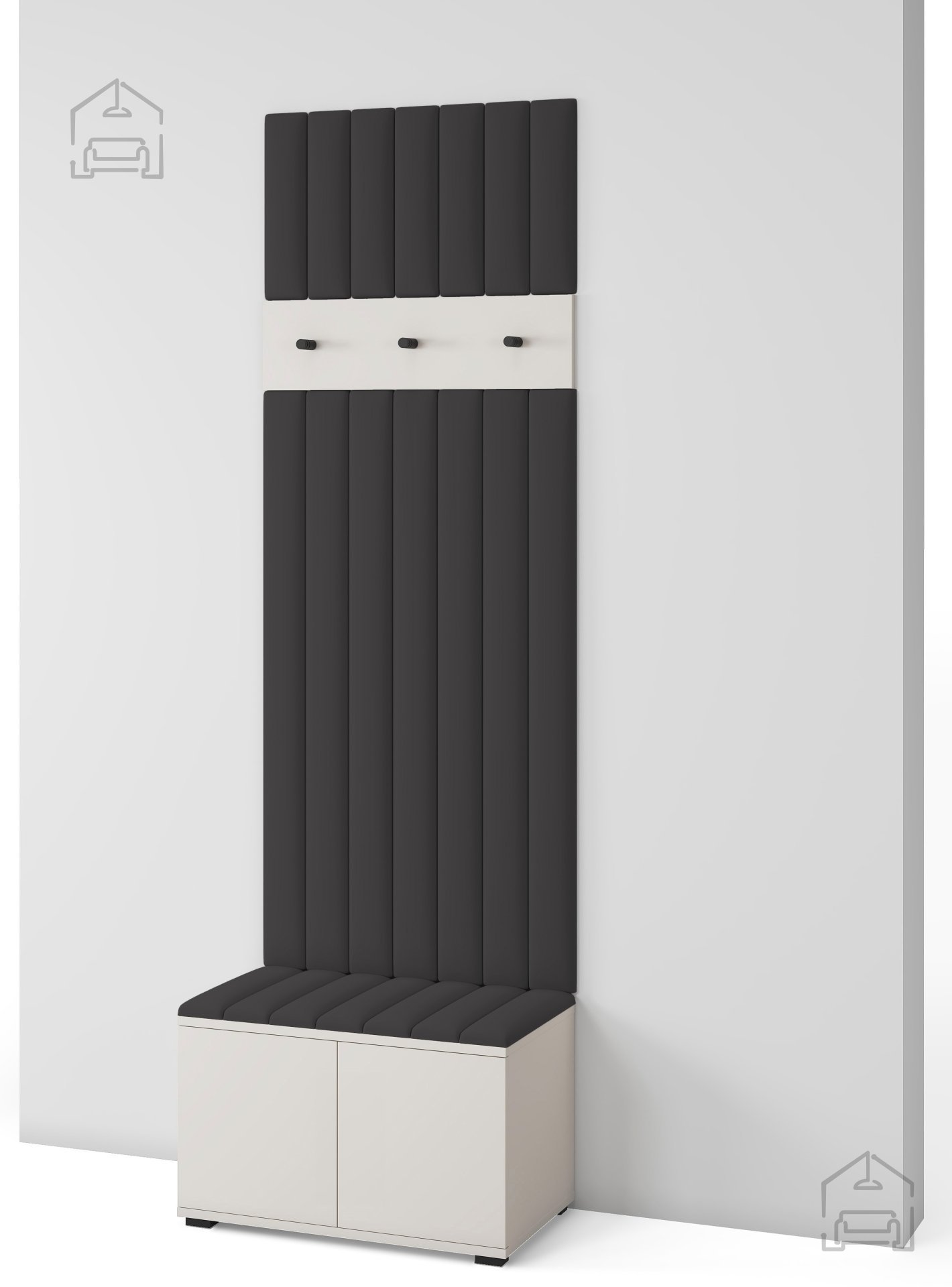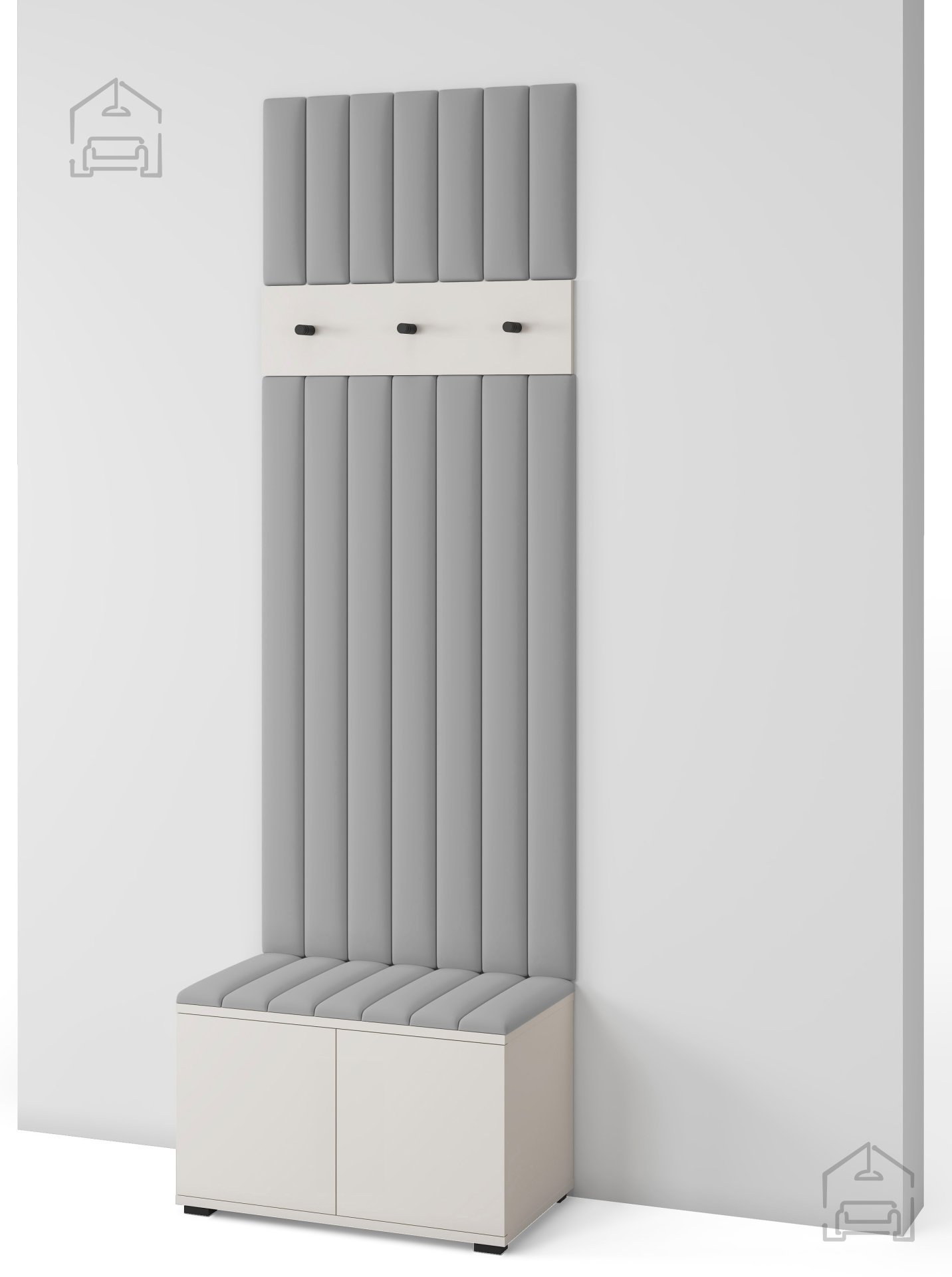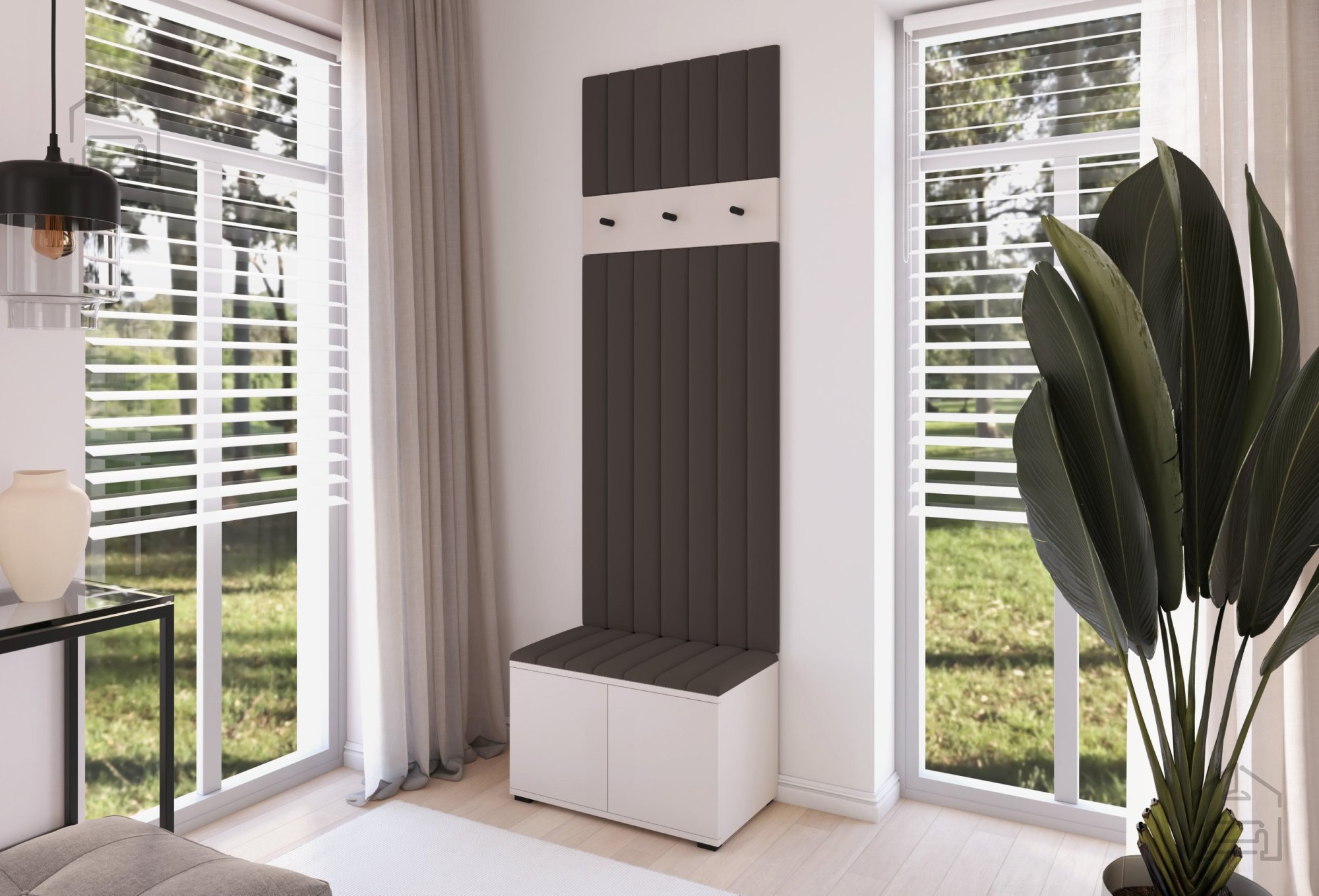 Die gepolsterten Wandpaneele erfüllen eine doppelte Funktion: Sie verschönern die Wand optisch und schützen sie zugleich vor Abnutzung. Die weiche Struktur verleiht dem Eingangsbereich eine wohnliche und einladende Atmosphäre – genau dort, wo der erste Eindruck vom Zuhause entsteht.