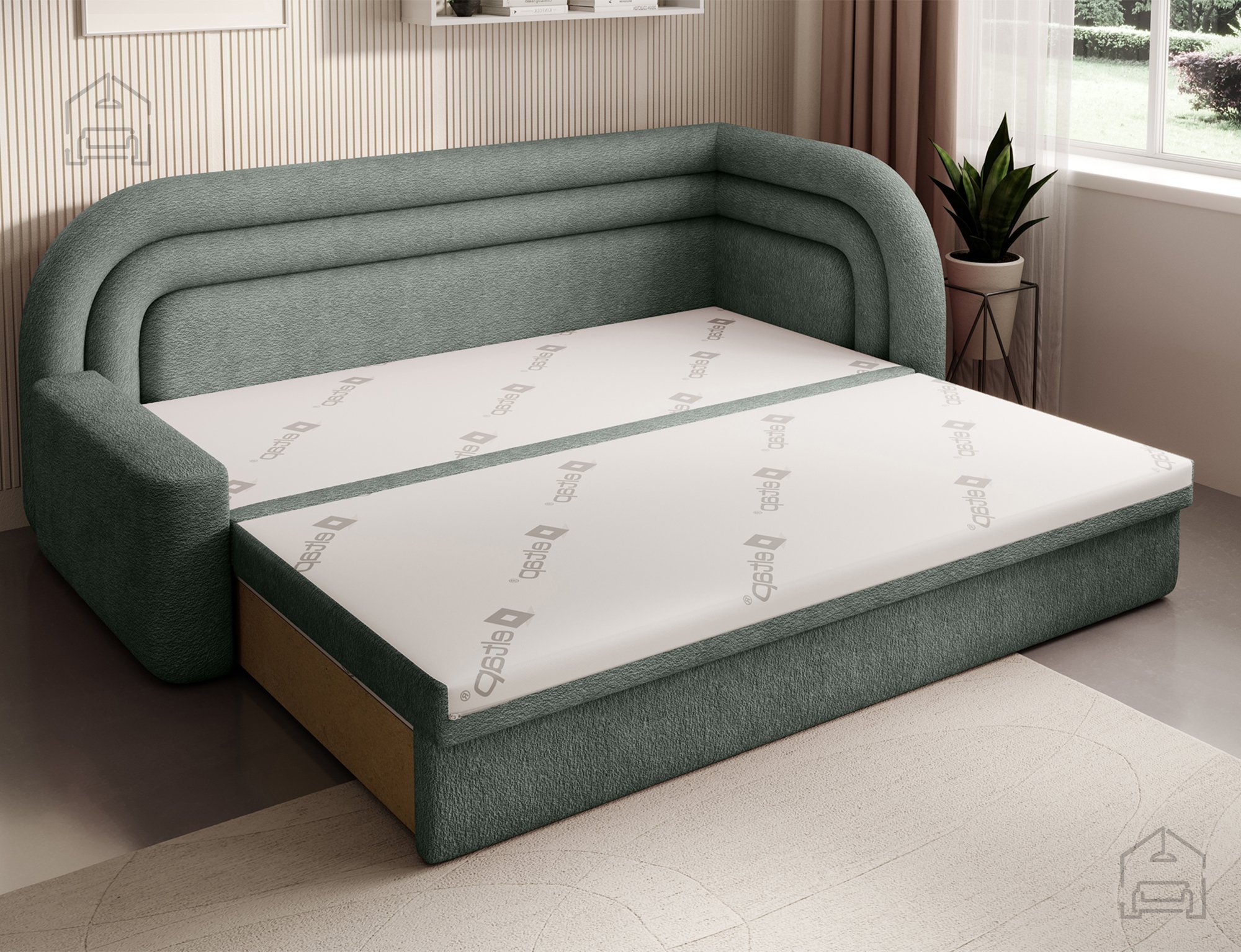 Ein besonderes Highlight des Modells Fabillo ist der Teleskop-Mechanismus, mit dem sich das Sofa mühelos in ein Bett verwandeln lässt. Die Liegefläche misst 199x135 cm, ist eben und komfortabel – ideal zum Entspannen oder als Gästebett. Der Mechanismus funktioniert leichtgängig und intuitiv, ohne großen Kraftaufwand, sodass das Ausziehen für jede Person einfach möglich ist. Das Modell verfügt über keinen Bettkasten und richtet sich an alle, die klare Linien und ein luftiges Raumgefühl bevorzugen.