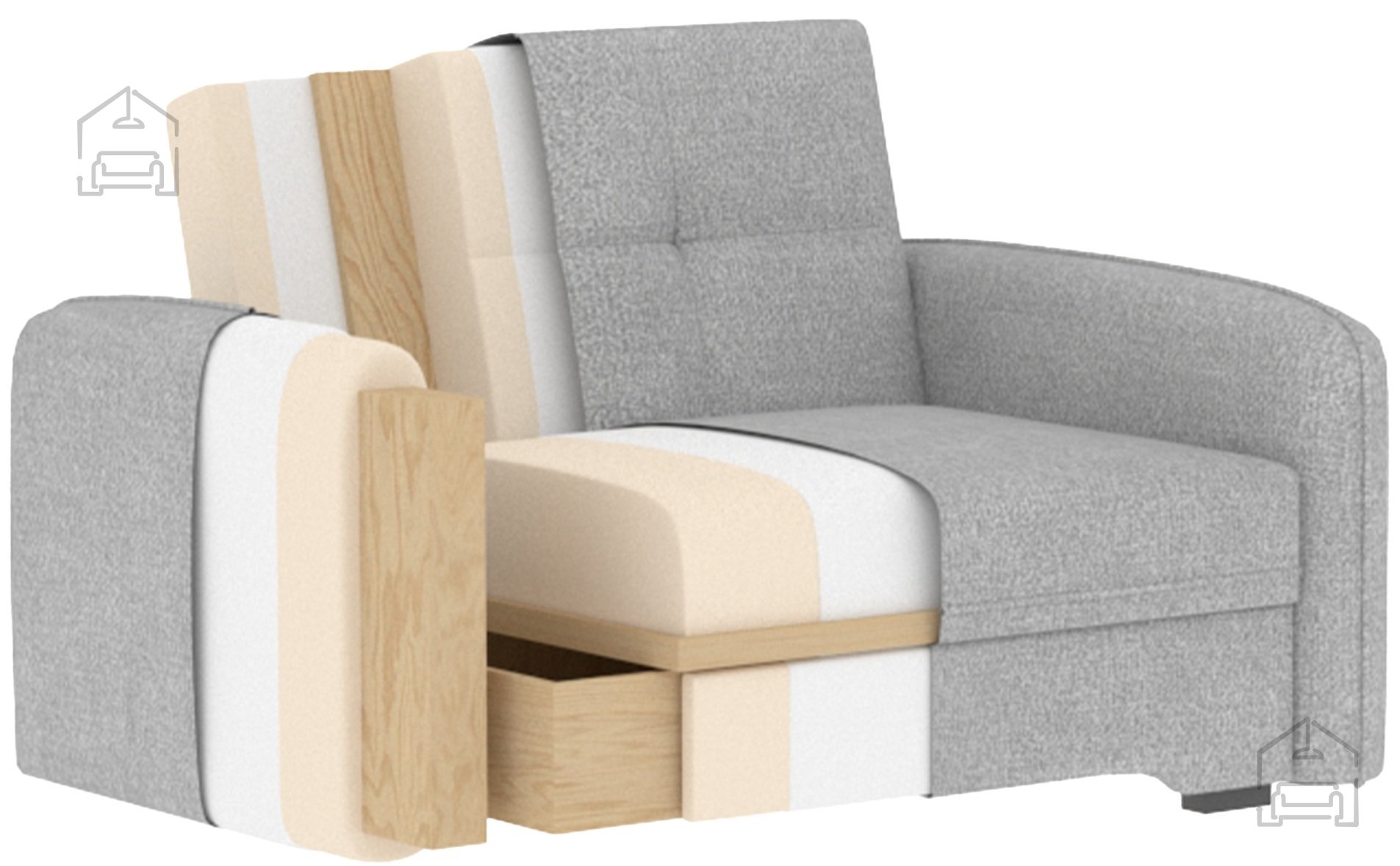 Die bei der Herstellung der Sofas und Sitzgarnituren verwendeten Materialien umfassen verschiedene Arten von Polyurethanschaum, Synthetikvlies und Viscolatex. Aufgrund der natürlichen Eigenschaften dieser Materialien behält sich der Hersteller eine Maßtoleranz von ±2 % in Breite und Länge vor.