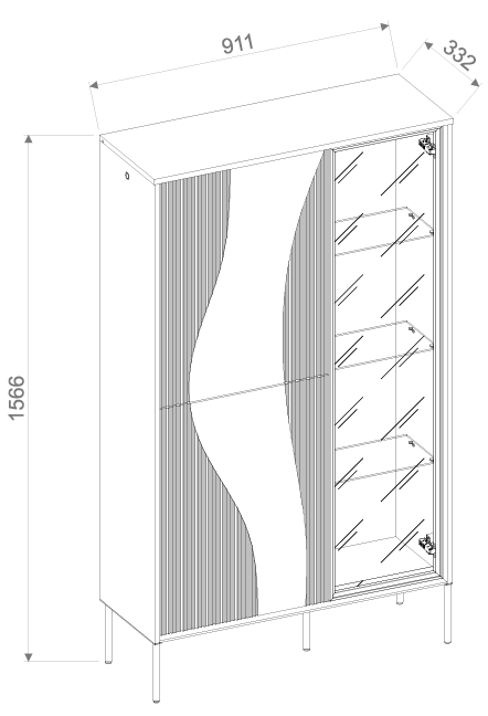 Die Vitrine ist so gestaltet, dass sie den vorhandenen Platz optimal nutzt. Im oberen Teil befindet sich ein Glaselement mit mehreren Einlegeböden – perfekt zum Präsentieren von Dekoration, Porzellan oder Glaswaren. Der untere Bereich mit Doppeltüren bietet diskreten Stauraum für alles, was nicht sichtbar sein soll. Die Kombination aus offenen und geschlossenen Bereichen macht dieses Möbelstück nicht nur ästhetisch, sondern auch ausgesprochen praktisch.