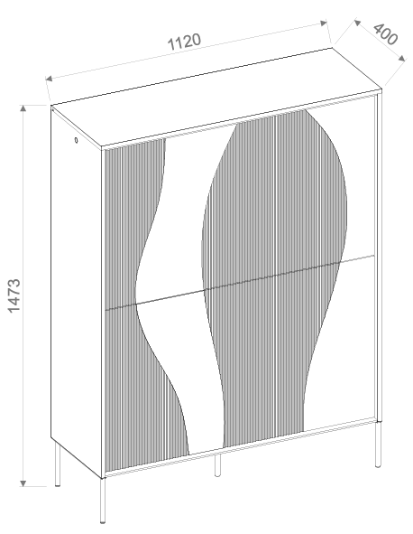 Mit einer Höhe von 148 cm bietet diese Kommode deutlich mehr Stauraum als klassische niedrige Modelle und wahrt zugleich ein ausgewogenes Verhältnis zwischen Höhe und Breite. Dank ihrer Breite von 112 cm fügt sie sich gut in kleinere bis mittelgroße Räume ein, während die Tiefe von 40 cm ausreichend Stabilität und Funktionalität bietet, ohne den Raum zu überladen.
