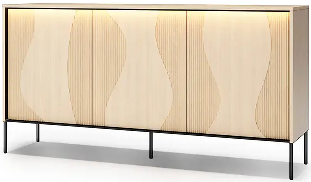 Die Kommode ist so konzipiert, dass der Innenraum optimal genutzt werden kann. Sie verfügt über drei Türen, hinter denen sich großzügiger Stauraum verbirgt. Die Einlegeböden bieten Platz für Geschirr, Textilien, Dokumente oder Dekoration – so bleibt alles ordentlich und übersichtlich. Die Flow FW-03 ist somit nicht nur optisch ansprechend, sondern auch ausgesprochen praktisch.