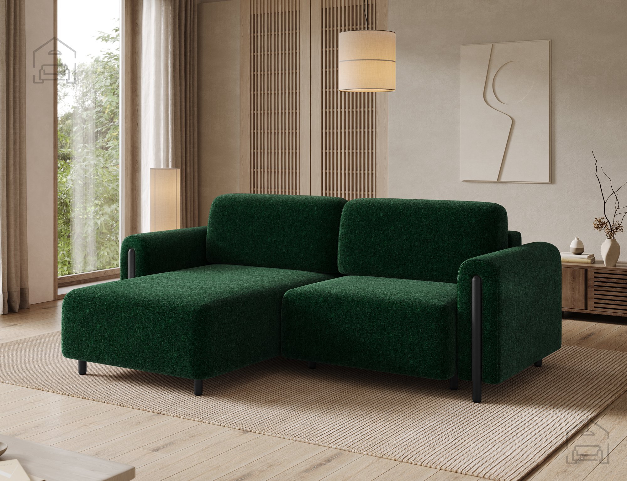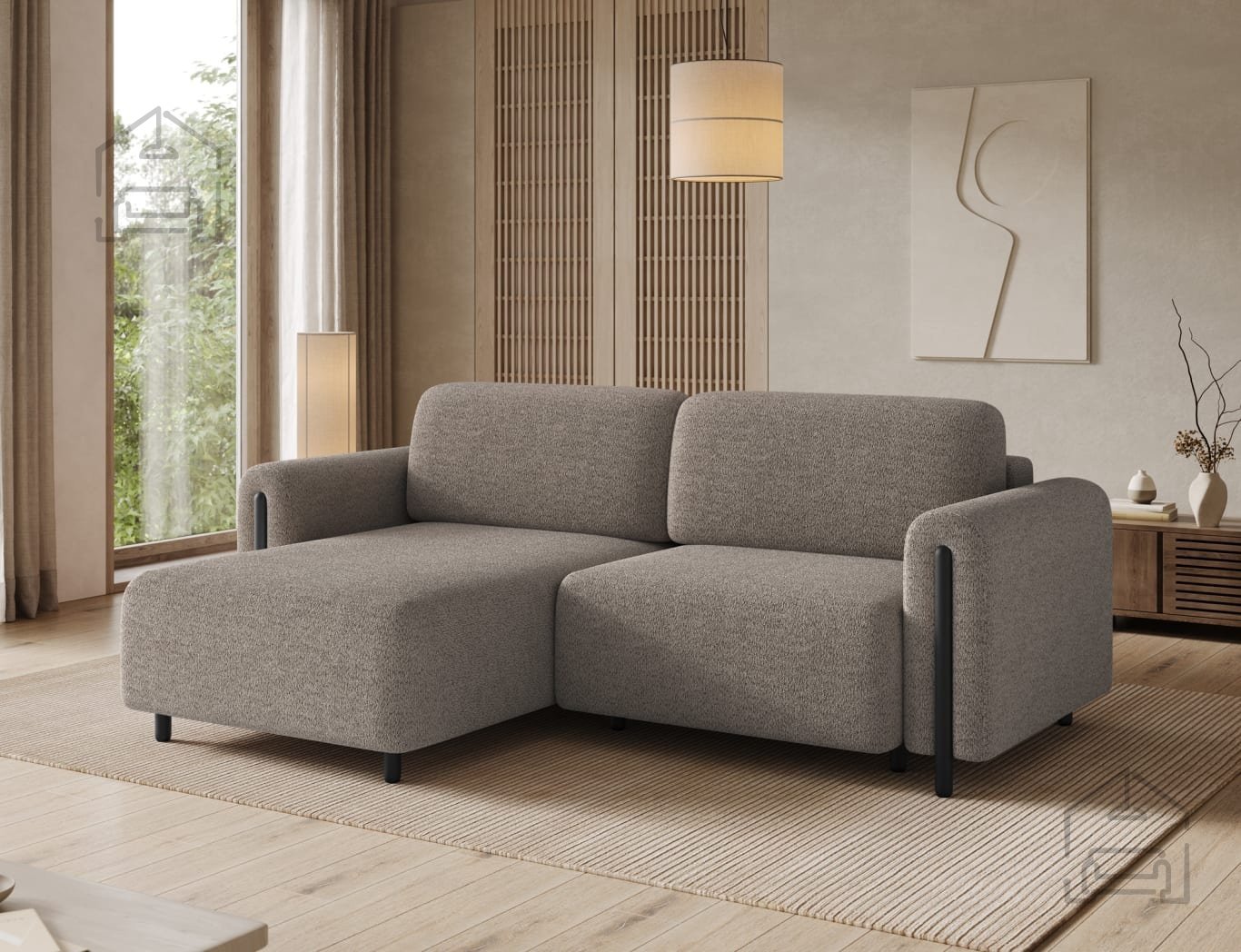Das stabile Fundament der Garnitur bildet ein robuster Holzrahmen, der für Langlebigkeit und Stabilität sorgt. Auch die Füße sind aus Holz gefertigt, was die Standfestigkeit erhöht und das natürliche Erscheinungsbild des Sofas unterstreicht. Dank dieser Konstruktion behält die Eckcouch Acossta ihre Form und Funktionalität auch bei täglichem Gebrauch über lange Zeit.