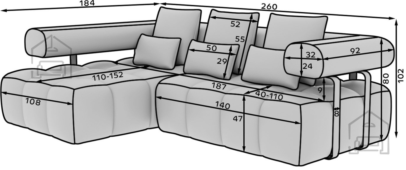 Die Eckgarnitur Levvi wurde im High-Tech-Stil entworfen, was sich in klaren Linien, sorgfältig ausgearbeiteten Details und der modernen elektrischen Funktion widerspiegelt. Sie nutzt den bewährten Euro-Mechanismus, der für Robustheit und einfache Handhabung steht. Durch die Bauweise ohne Bettkasten wirkt die Konstruktion leichter, während die hochwertigen Materialien Stabilität und Langlebigkeit garantieren. Damit eignet sich die Garnitur sowohl für zeitgemäße Familienwohnzimmer als auch für elegante Geschäftsräume, in denen Komfort und Ästhetik gleichermaßen zählen.