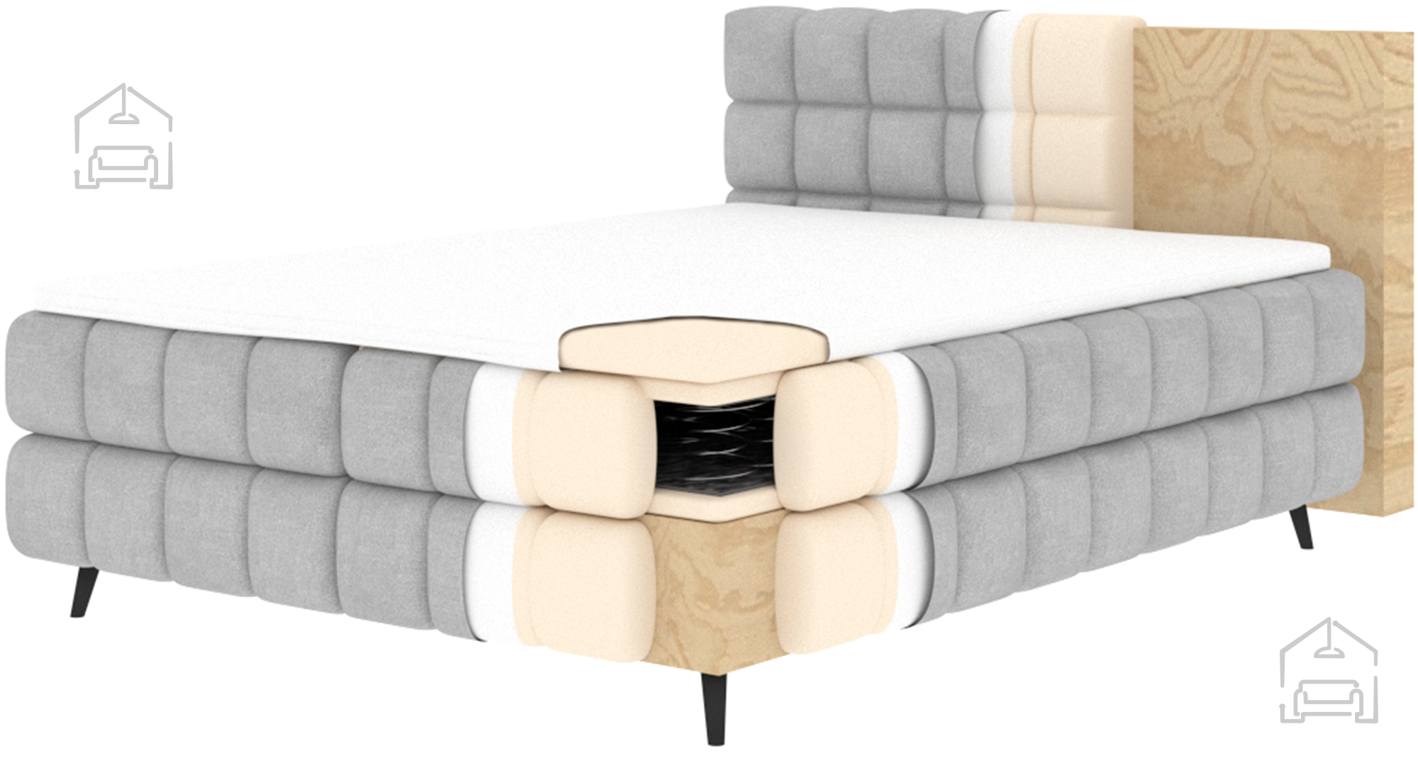 Der Kern der Matratze besteht aus einer Bonell-Federung und T2540-Schaumstoff, was eine optimale Körperstütze und gleichmäßige Gewichtsverteilung während des Schlafs gewährleistet. Die Bonell-Federung sorgt für gute Luftzirkulation und Elastizität, während der T2540-Schaum zusätzlichen Komfort und Weichheit bietet. Das Kopfteil ist mit T2130-Schaum gepolstert und stützt angenehm den Rücken beim Lesen oder Entspannen im Bett. Die Sitzhöhe beträgt 51 cm, was einen bequemen Einstieg und einfaches Aufstehen ermöglicht.