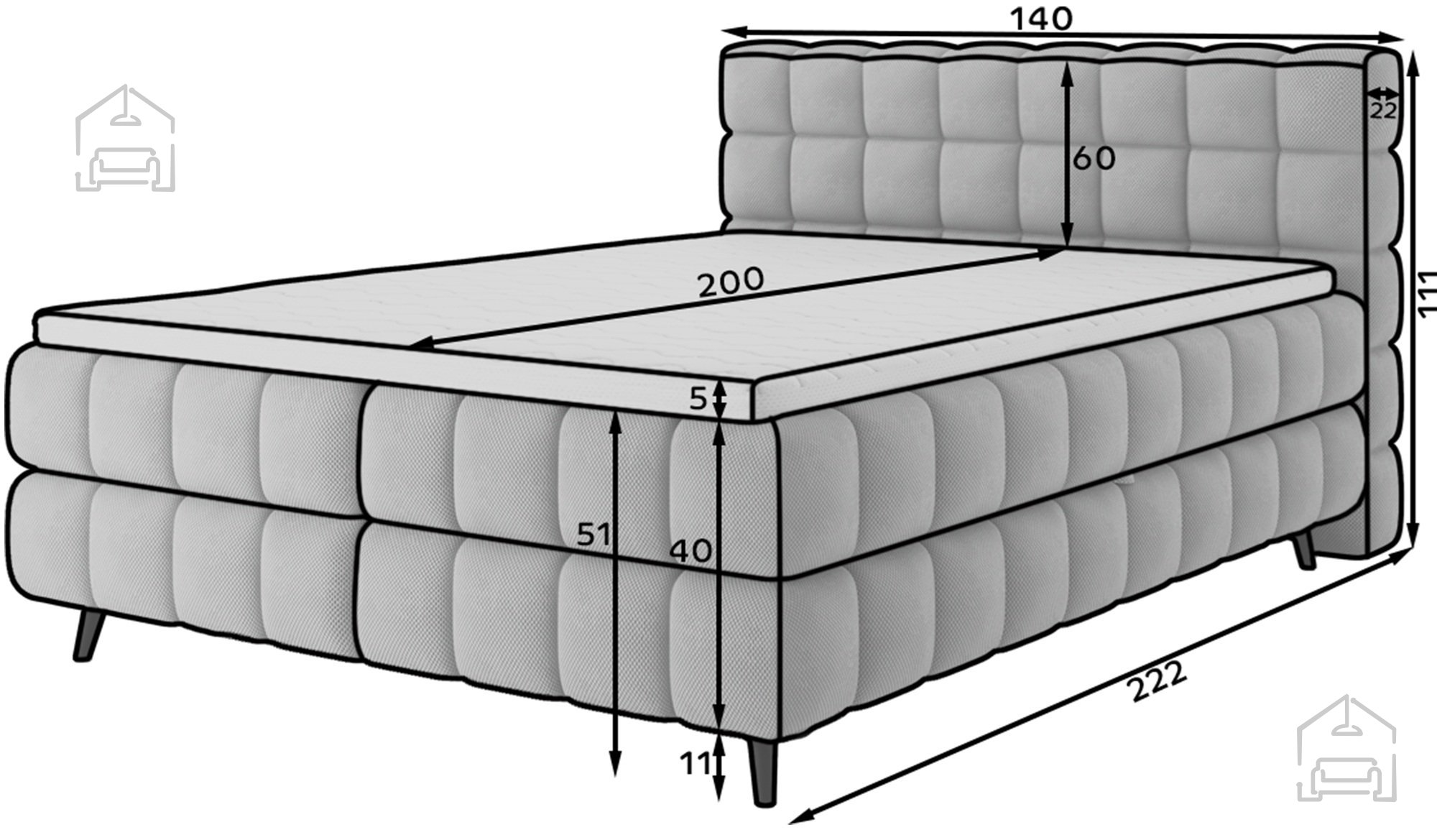 Der Kern der Matratze besteht aus einer Bonell-Federung und T2540-Schaumstoff, was für optimale Körperunterstützung und gleichmäßige Gewichtsverteilung während des Schlafs sorgt. Die Bonell-Federung gewährleistet gute Luftzirkulation und Elastizität, während der T2540-Schaum zusätzlichen Komfort und Weichheit bietet. Das gepolsterte Kopfteil ist mit T2130-Schaum versehen und bietet angenehme Rückenstütze beim Lesen oder Entspannen im Bett. Die Sitzhöhe beträgt 51 cm, was das Hinsetzen und Aufstehen besonders bequem macht.
