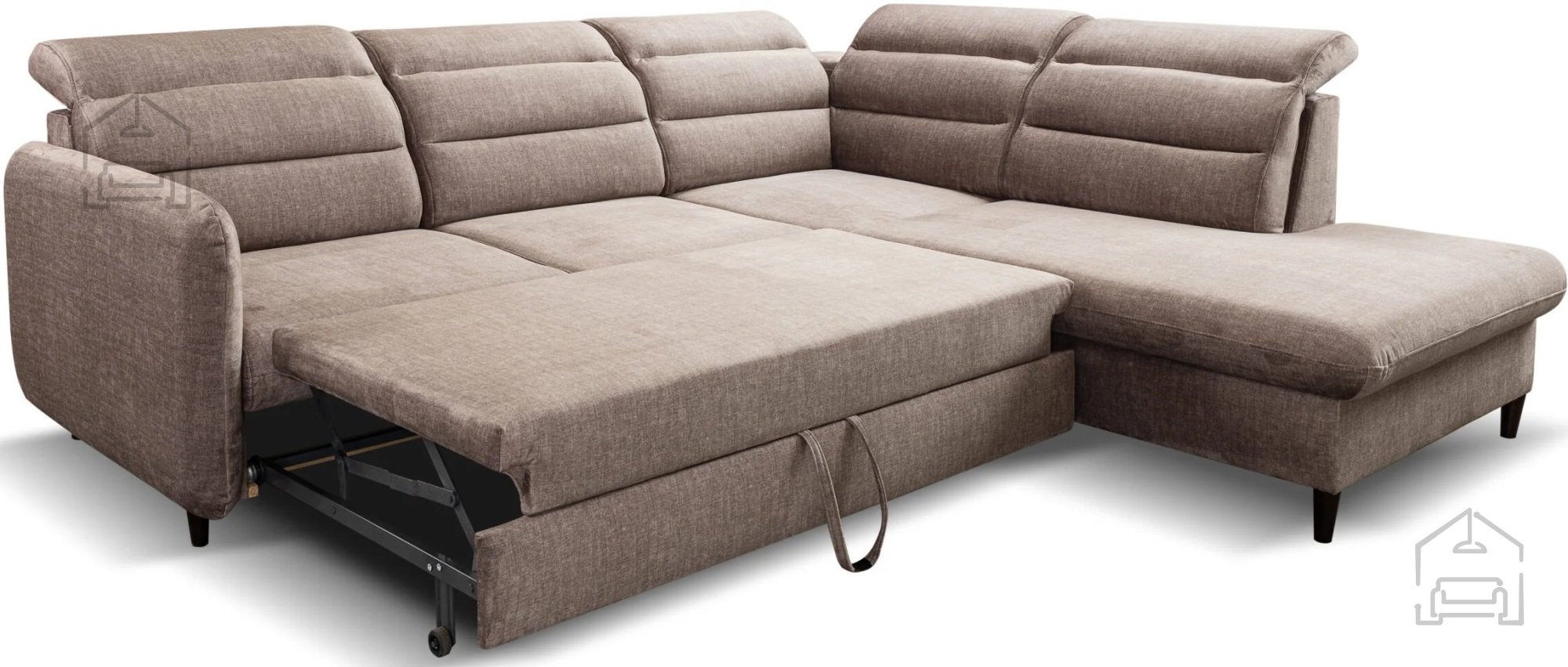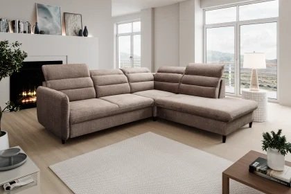 Das Modell Samos L bietet mehrere praktische Funktionen, die den täglichen Gebrauch erleichtern. Die Garnitur ist mit verstellbaren Kopfstützen ausgestattet, die individuell an den gewünschten Neigungswinkel angepasst werden können. Dank der Unterstützung beim automatischen Ausklappen lässt sich die Sitzfläche mühelos in ein Bett verwandeln – ideal für kleinere Räume oder gelegentliche Übernachtungsgäste.