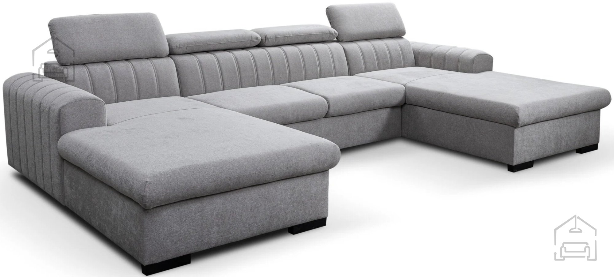 Die Gesamtmaße der Garnitur betragen 338×193 cm. Durch ihre U-Form eignet sie sich hervorragend für großzügige Wohnzimmer und wird dort schnell zum Mittelpunkt des Raumes. Sie bietet ausreichend Platz für Familie und Gäste und schafft eine gemütliche, einladende Atmosphäre. Die Garnitur ist in mehreren Farbvarianten erhältlich, damit sie sich harmonisch in unterschiedliche Einrichtungen einfügt. Moderne Stoffe und Farben unterstreichen ihren minimalistischen, aber eleganten Stil.