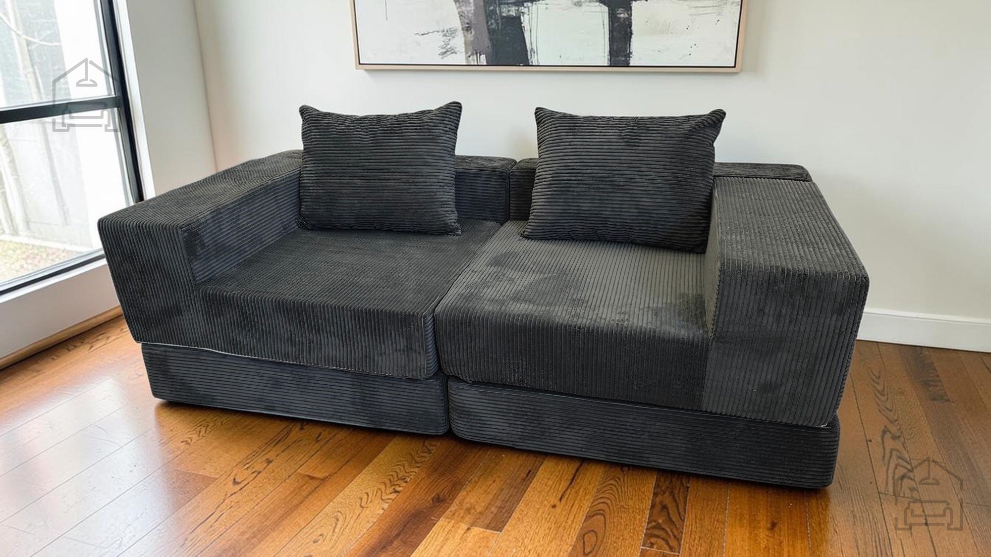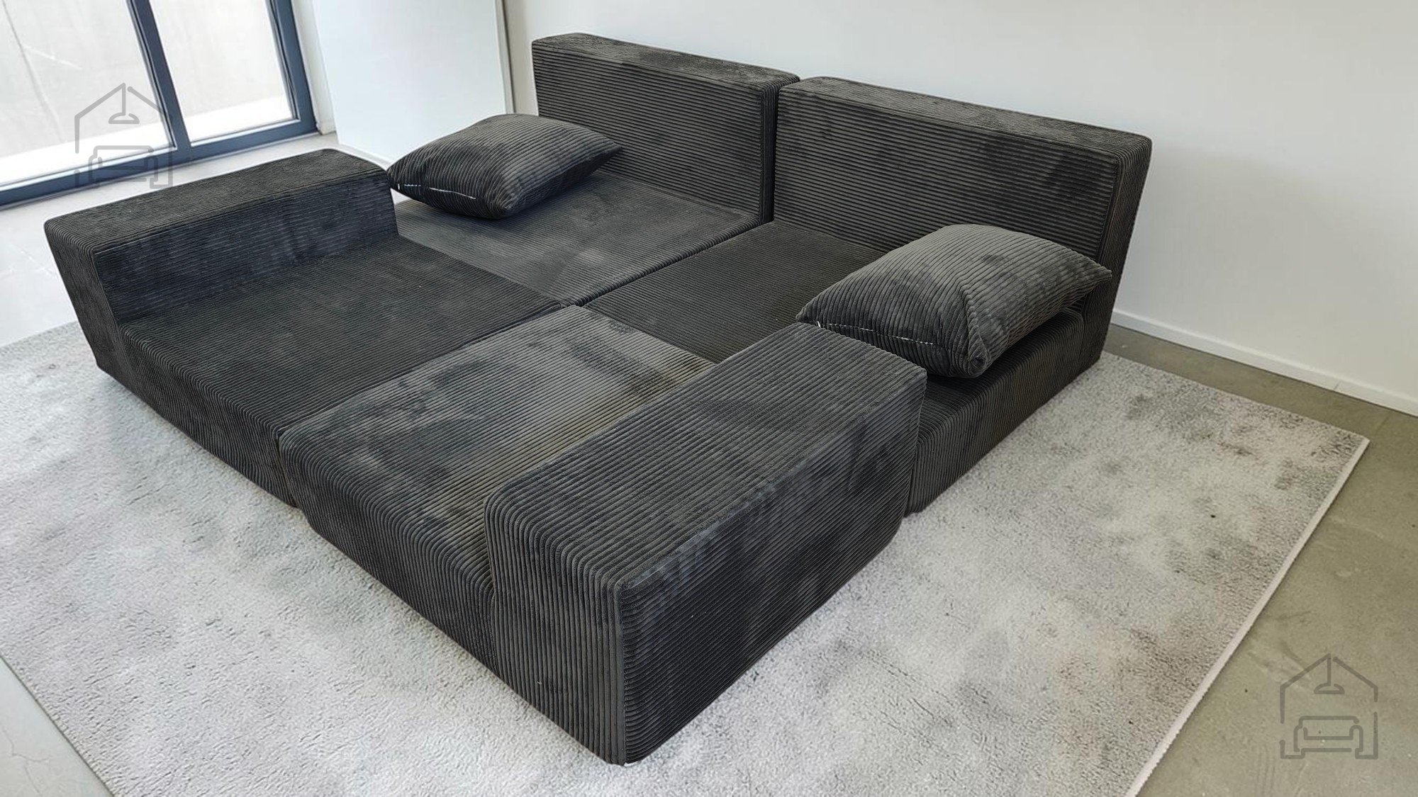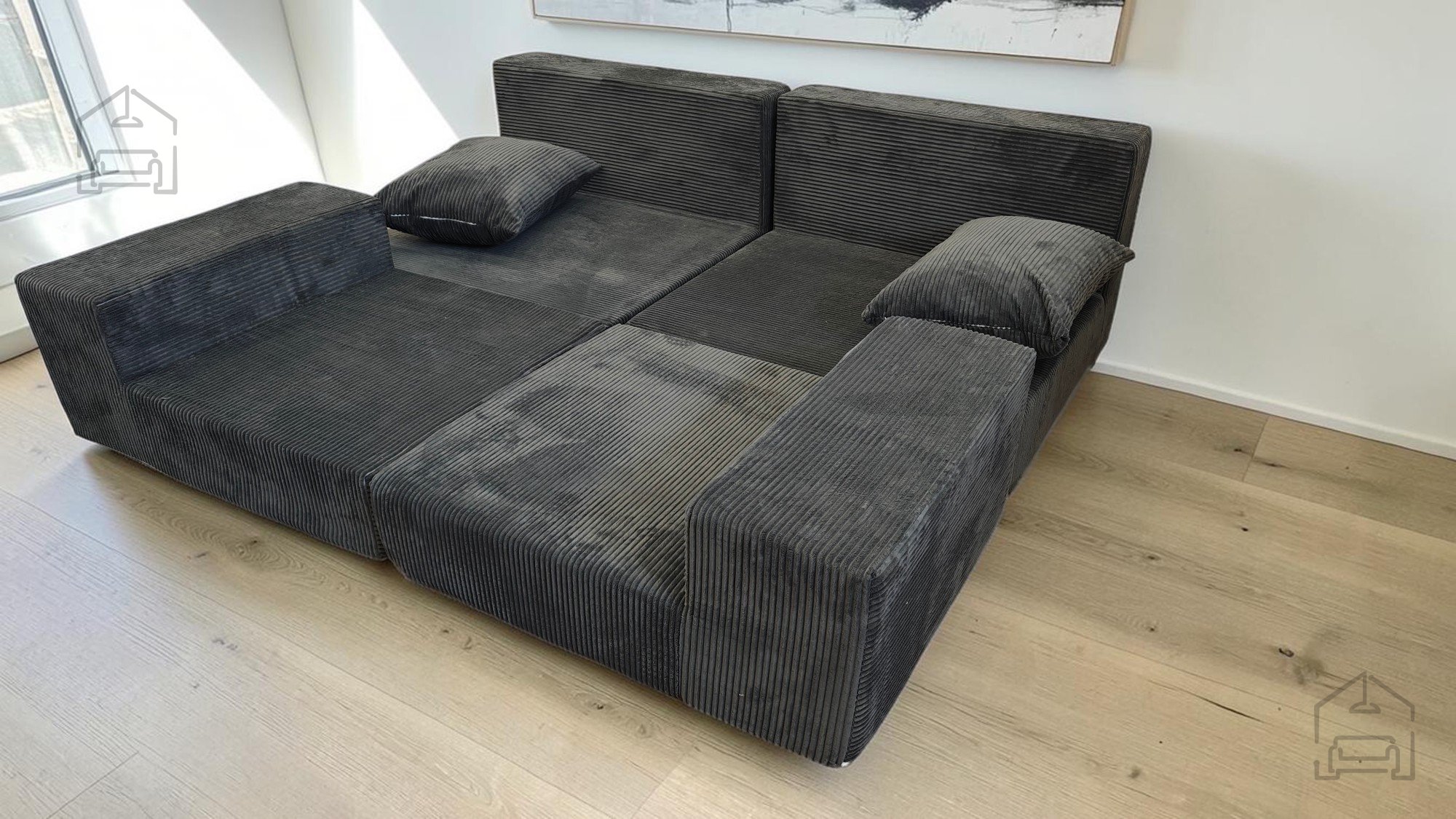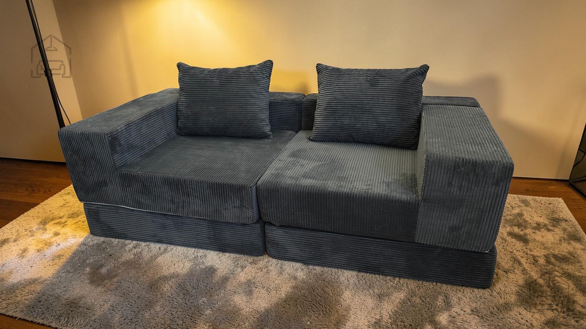 Das Sofa besteht aus hochwertigem Schaumstoff, der angenehme Weichheit und zugleich stabile Unterstützung bietet. Der Bezug aus strapazierfähigem Möbelstoff fühlt sich angenehm an und ist leicht zu reinigen. Nach dem Vakuumverpacken entfaltet sich der Schaumstoff innerhalb von 24 bis 96 Stunden vollständig – ein üblicher Vorgang bei dieser Art von Produkt. Sobald sich das Material ausgedehnt hat, nimmt das Sofa seine endgültige Form und Größe an und ist bereit für den täglichen Gebrauch.